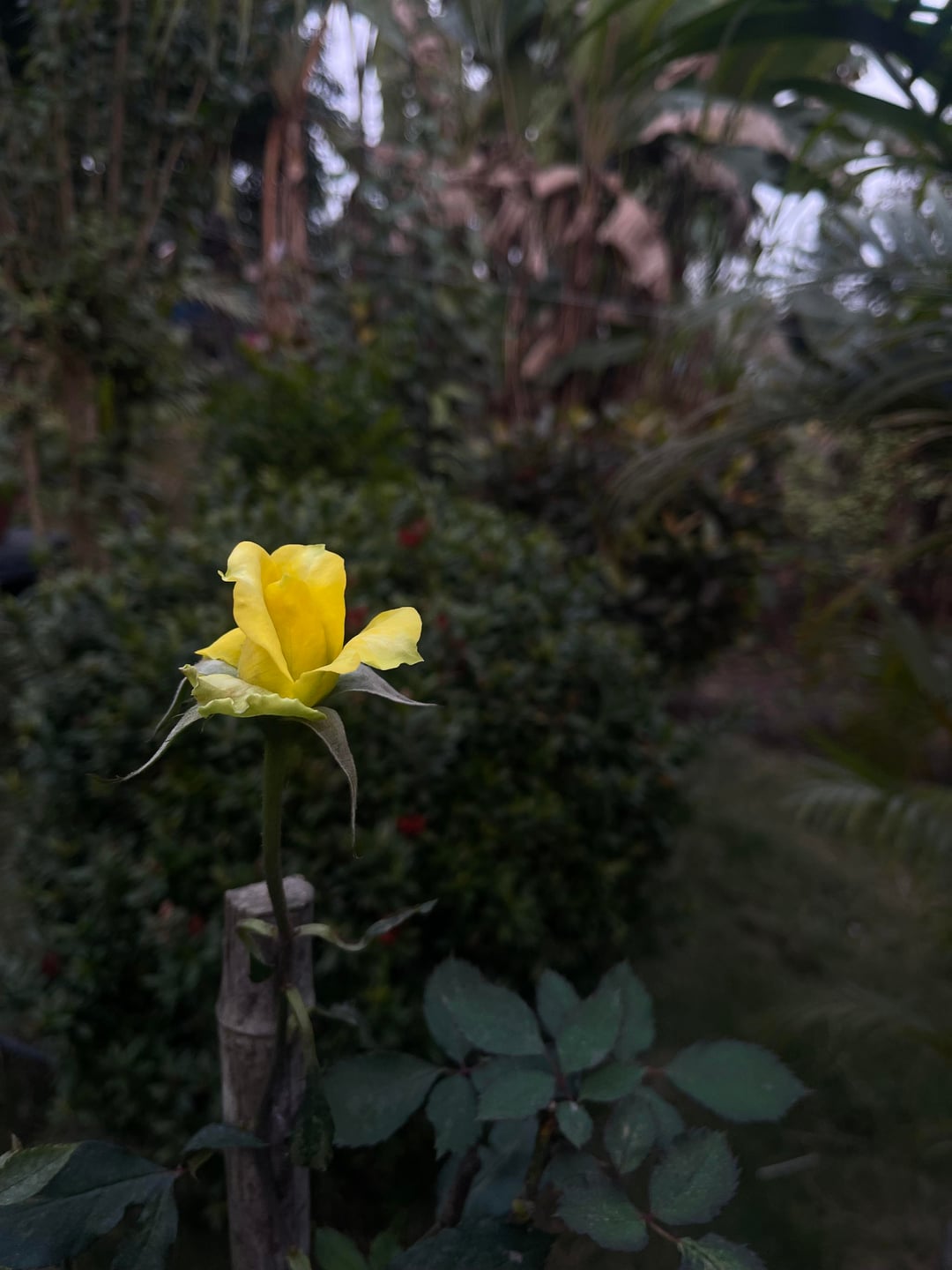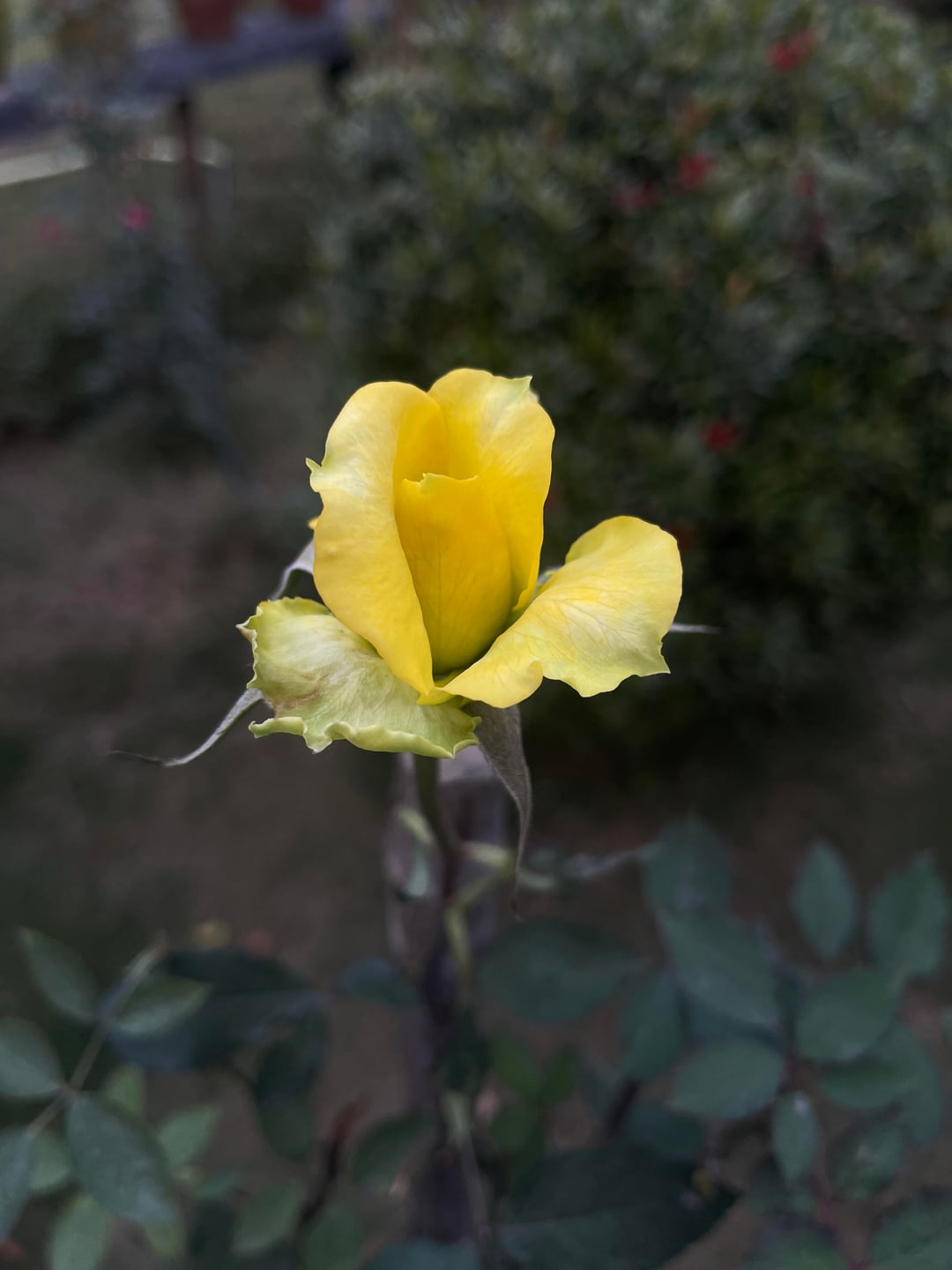 庭に一輪の黄色いバラが咲きました🌼