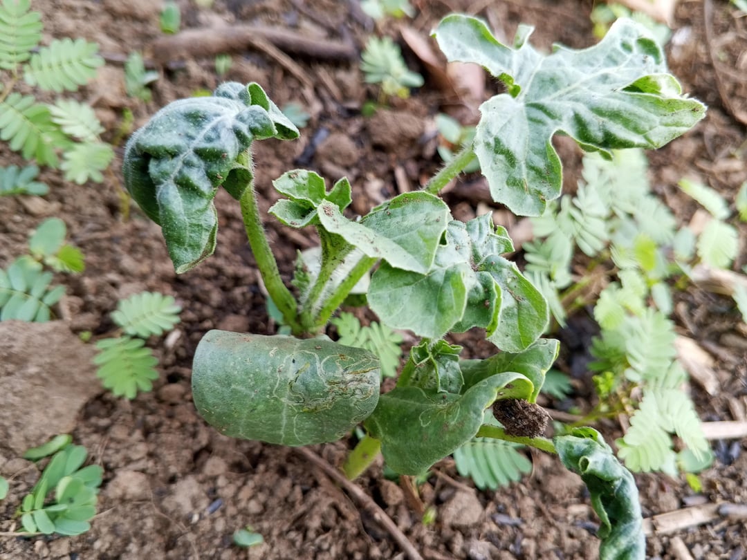 "やあ、庭師の皆さん! 🌿 私はカメルーンにいますが、スイカの葉が丸まったり、折れたり、ねじれたりしています。水やりや肥料を調整してみましたが、うまくいきませんでした。土壌は水浸しではなく、目に見える害虫もありません。これの原因は何か考えられますか?上の写真😊