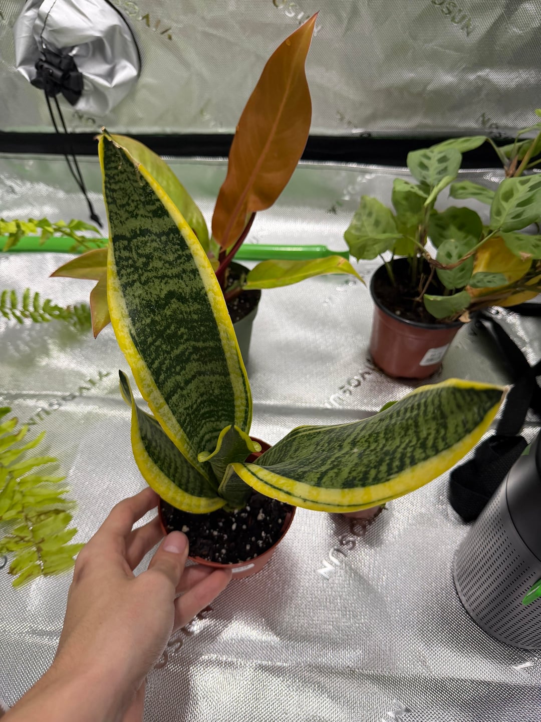 それで、私はマングローブスネークを手に入れ、4フィートx2フィートx5フィートの栽培テントを持っていますが、とにかくそれが本来の用途であるため、生きた植物で満たそうとしています。たくさんの観葉植物を育てている叔母が誕生日にこれらの 6 種類の植物をくれたのですが、それらはどれも同じような湿度と温度の範囲を持っていると教えてくれました。私の知る限り、その種は祈りの植物、ボストンシダ、鳥の巣シダ、ゴールデンポトス、スネークプラント、そしてブラッシングフィロデンドロンです。ヘビの囲いは華氏 85 ~ 90 度程度に保ち、湿度を約 85% に保つ必要があります。私の主な質問は、これらすべてがその時期に適しているかということです。それぞれの水やりや剪定の頻度はどれくらいですか?使用できる良い培養土/土の混合物はありますか?また、囲いの中に土のベースがあり、植物は鉢から取り出されます。前もって感謝します!