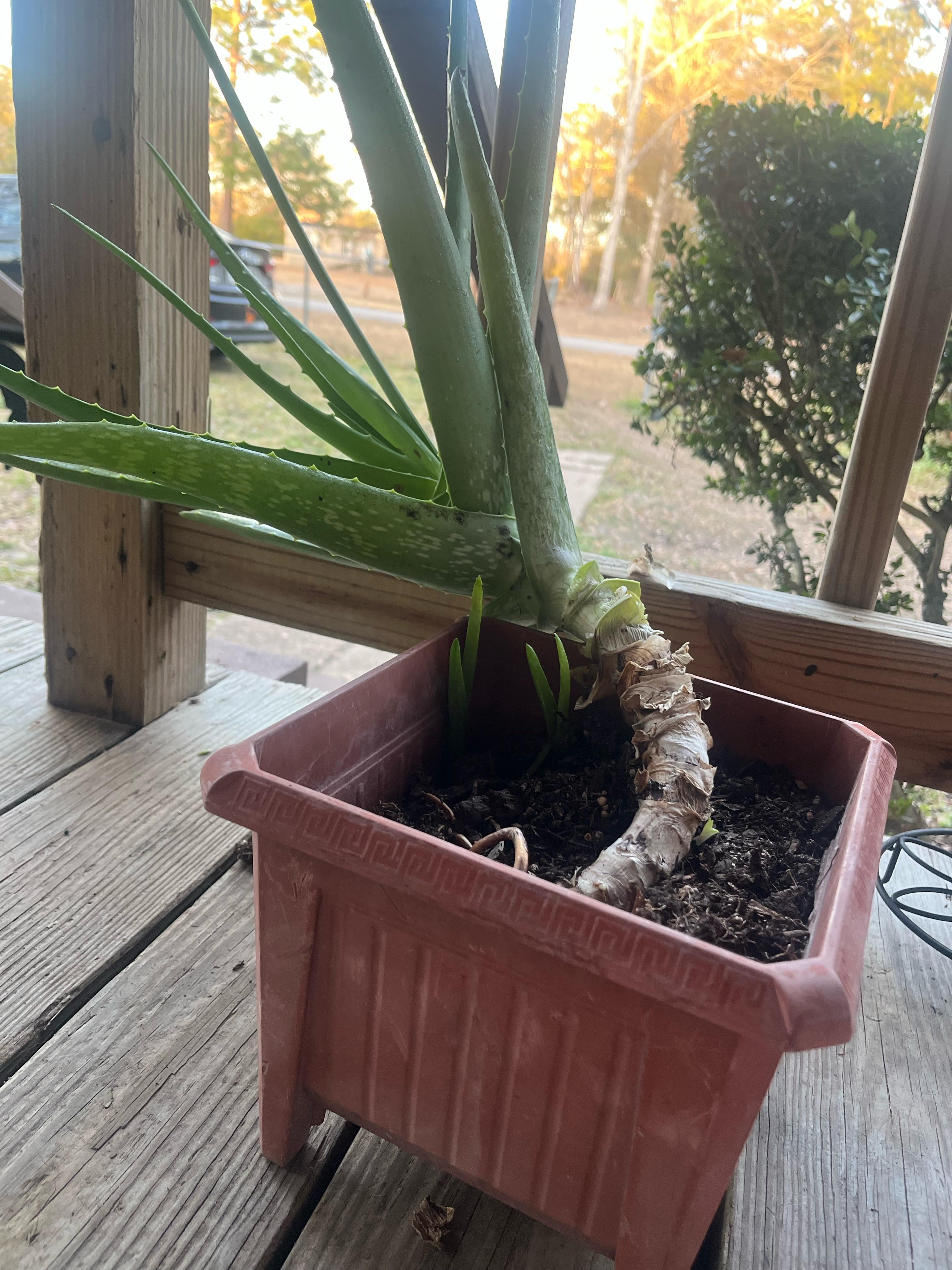 最近、病気のアロエベラの植物を採用しました。黒い斑点があり、現在治療中ですが、この成長が気になります。 10個ほど除去できました "子犬" この 1 つのコンテナからはすべてがかなり健全に見えました。ご覧のとおり、いくつか残っていますが、取り出す前にもう少し成長する必要があると思います。しかし、ママプラントについては、植え替えるべきでしょうか、それとも茎を切り詰める方法はあるのでしょうか?