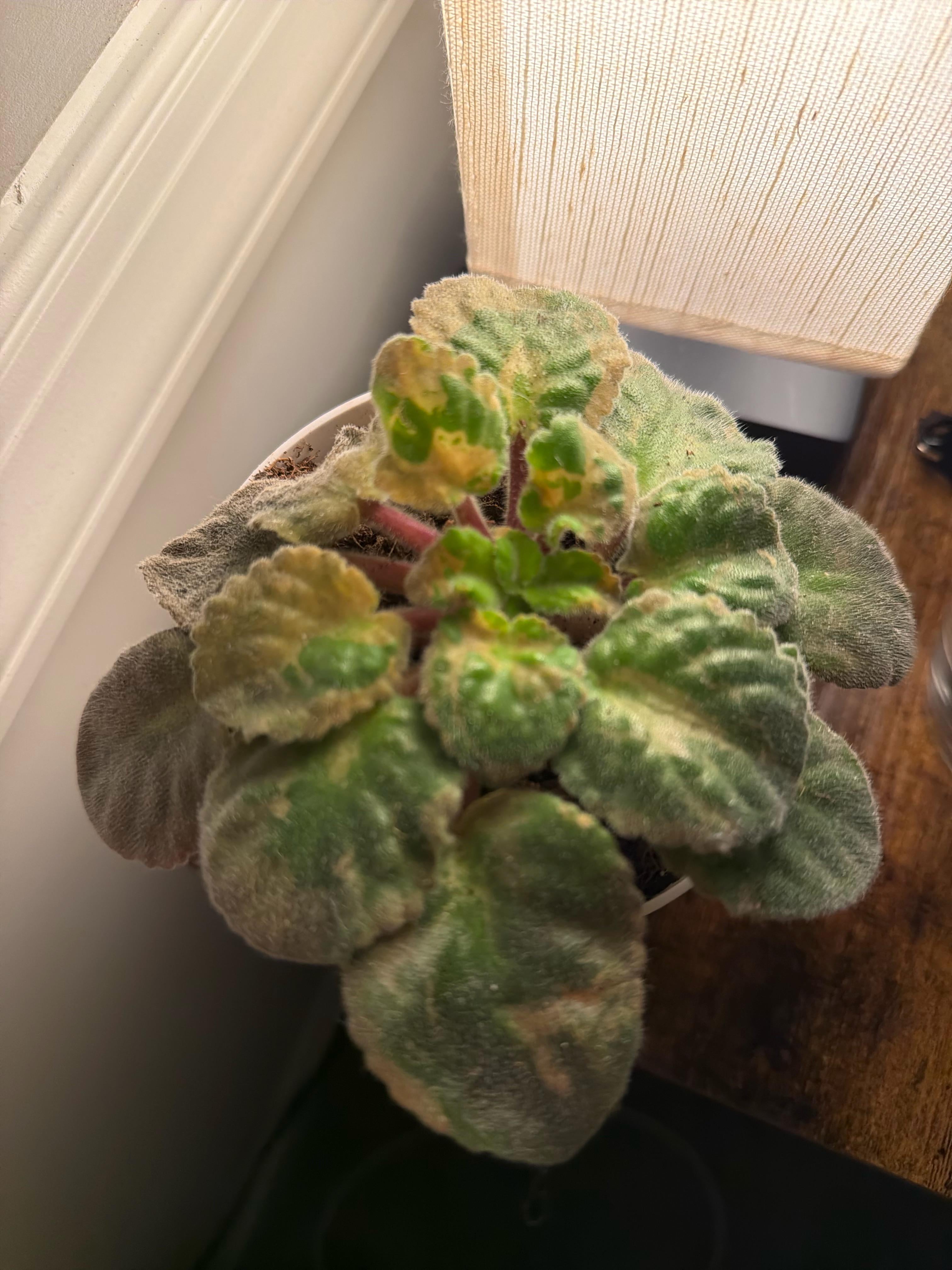 こんにちは、みんな!!!夏からこのアフリカンスミレを飼っていて、すくすく育っています!私は文字通り、緑の親指を持っていませんが、この植物が大好きで大切にしているので、保存したいと思っています。 現在、ペンシルバニア州は冬で、天気は寒いです。ところで、私の家族は家の中が暖かいのが好きなので、私の部屋はサウナのようです。 2週間前からアフリカンバイオレットが淡い茶色に変色し始めたのですが、どうすれば治せるのかわかりません。