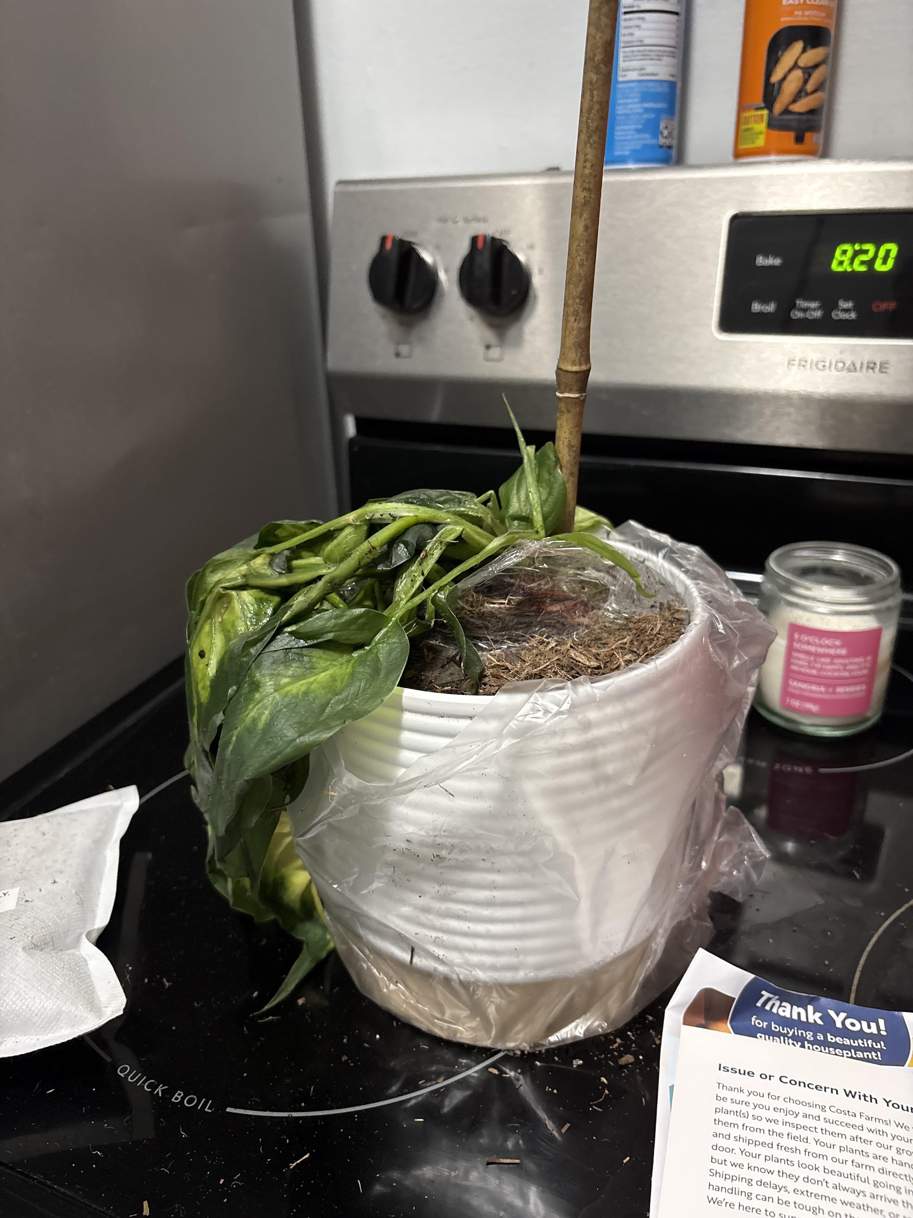 この植物は職場からの贈り物として私に発送され、郵便で届いたときはこんな感じでした🥲 私はコネチカット州に住んでいるので、輸送中に凍傷になったのだと思いますが、なんとか回復する方法があることを願っていました。それについて私が知っているのは、それがディフェンバキアという植物であるということだけです。それをどう扱うかについてのアドバイスは大歓迎です!!!💔