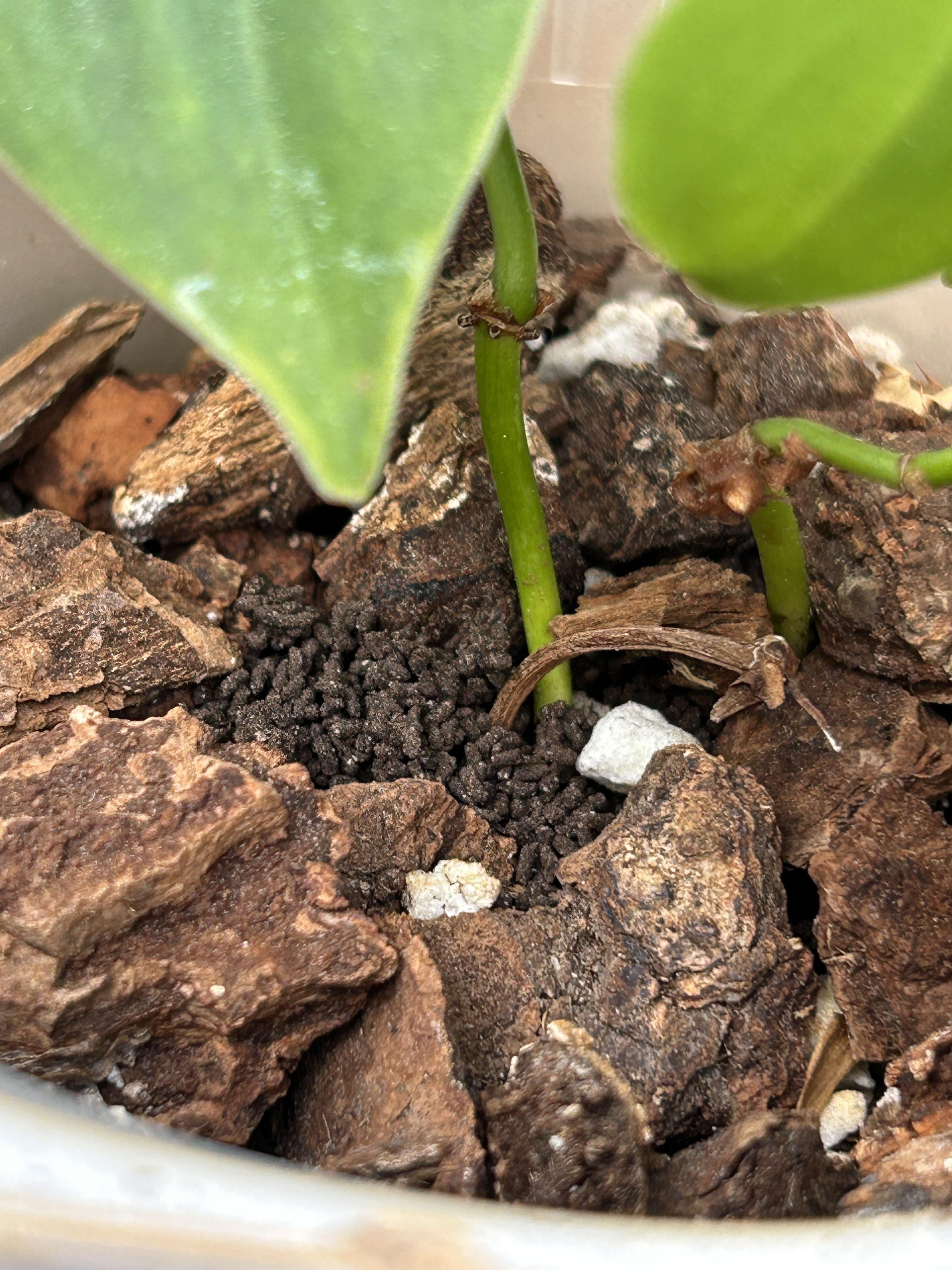 これはしばらく外に置いていたフィロデンドロンですが、様子を見に行ったときに、この小さな破片の山にびっくりしました。なぜなら、私の土壌混合物とはまったく似ていないからです。助けてください 😭 とにかく、植物をカスティーリャ石鹸混合物に浸したほうがいいでしょうか…それとも何か他のものでしょうか?