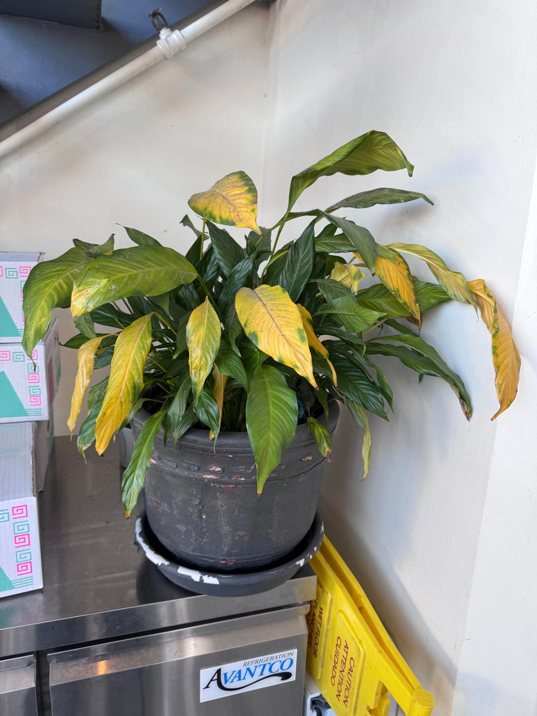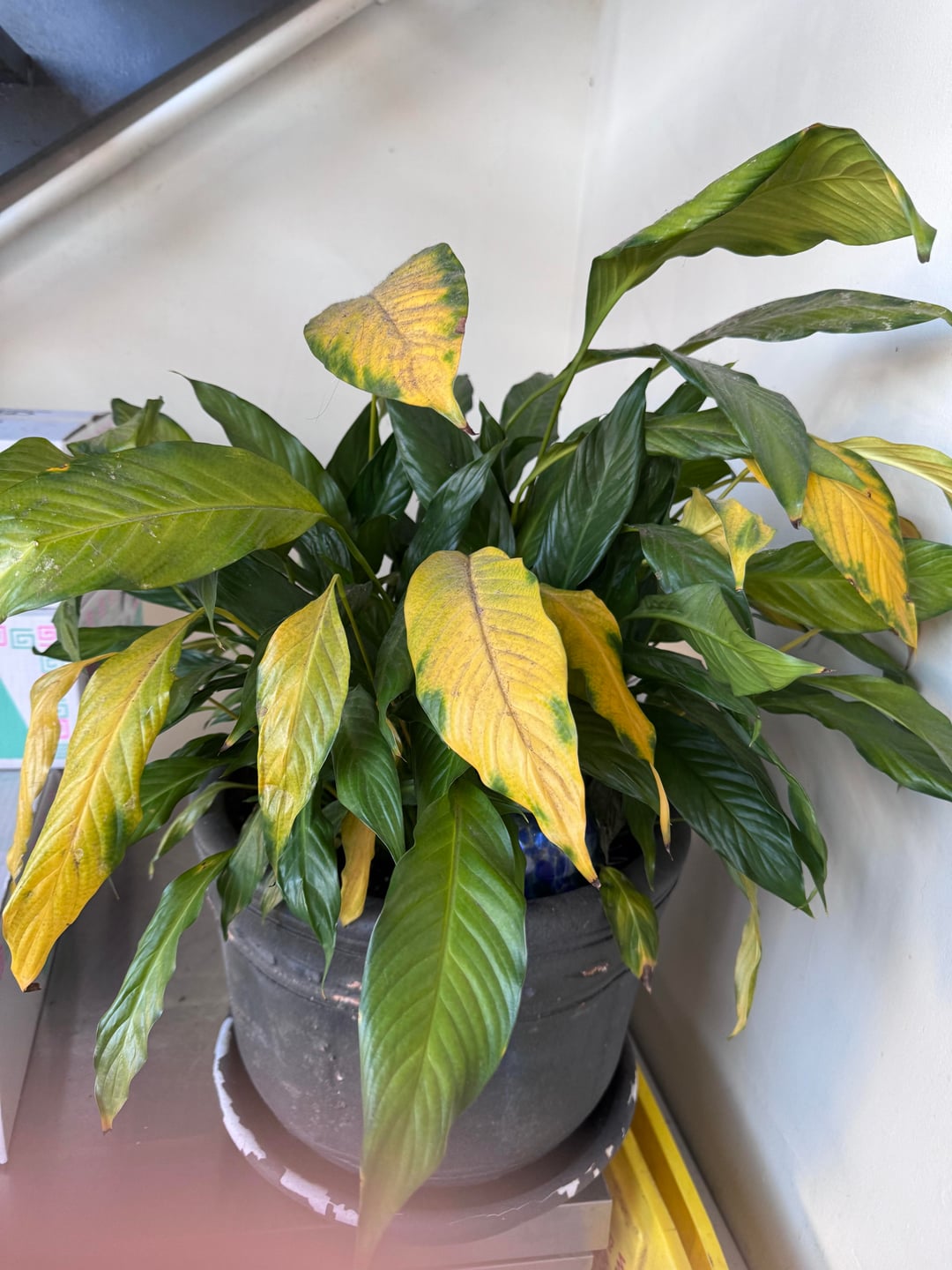 約2週間前、私は上司に、このピースリリーを家に持ち帰り、リハビリを試みることができるかどうか尋ねました。以下にこれまでやってきたこと、現在の計画、生活状況を載せておきます。ピースユリのリハビリと適切なケアに関するアドバイスを探しています。私はこれまで所有したことがありませんでしたが、仕事でとても悲しく見え、徐々に悪化してきました。最初の 3 枚の写真は私の仕事からのもので、最後の 3 枚の写真は 2 週間後の私の家の現在の様子です。