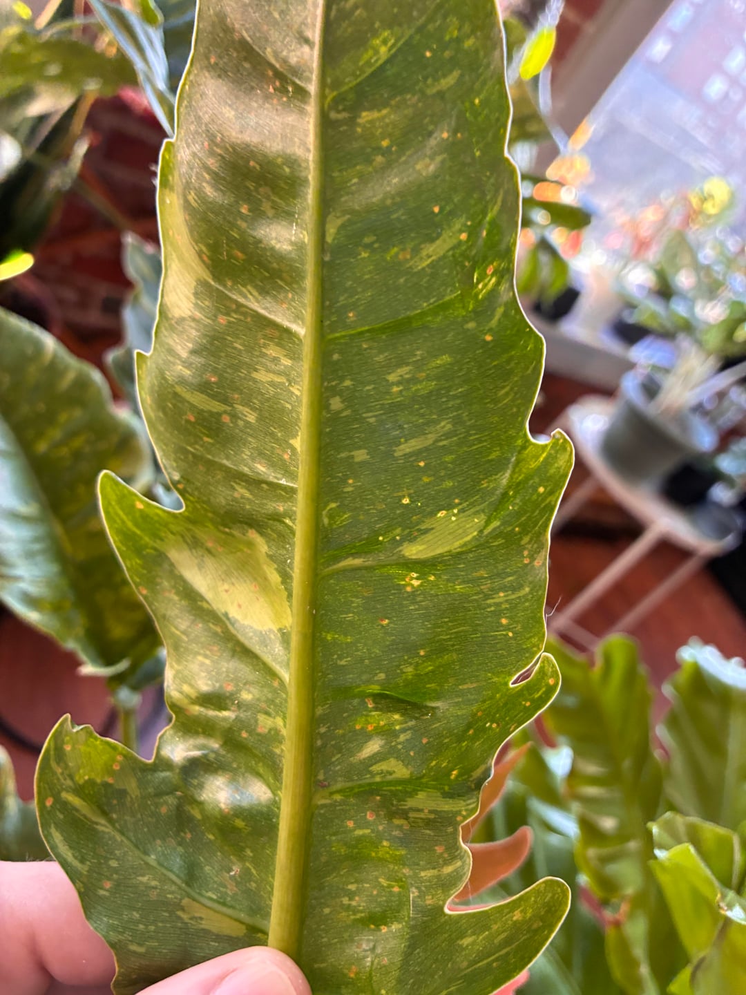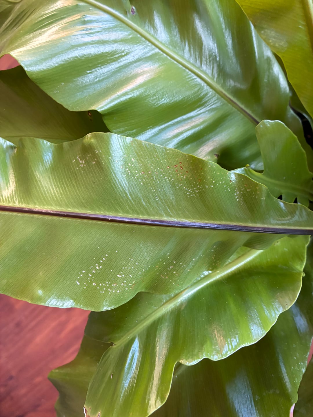 このシダの葉の下側には、鱗片やコナカイガラムシではなく、凹んだ小さな窪みがあります。私のリング・オブ・ファイア・フィロデンドロンでもそれらに気づきました