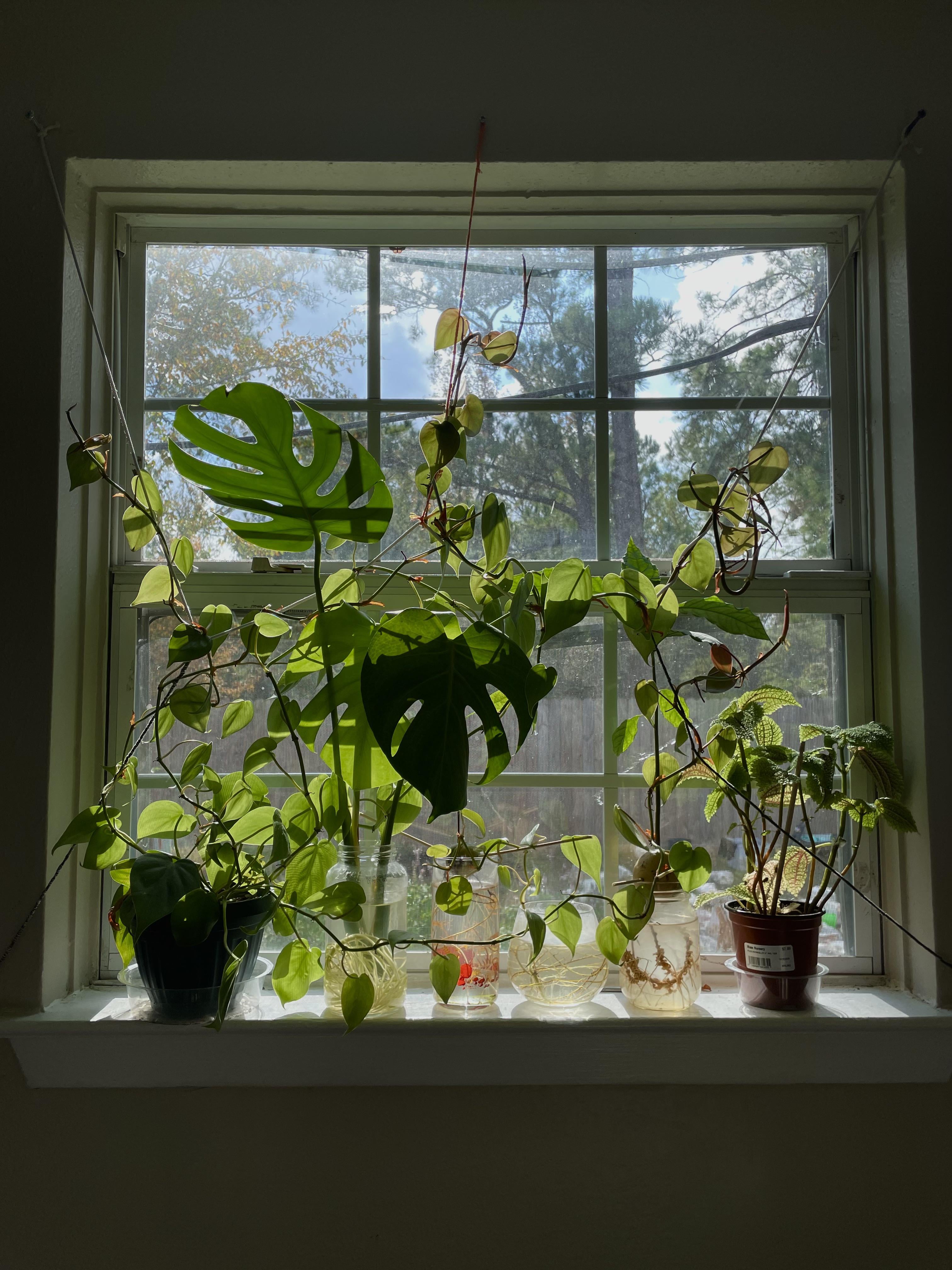 こんにちは!これらは私の室内植物で、座って太陽の光を楽しんでいます。私たちは1年前にこの家に引っ越してきました。この窓は家の南側にあり、とても明るいです。それで植物をここに置いたのですが、今は寒いです。植物の 1 つ (モンステラ) の葉の 1 つが黄色くなり始めました。右側のもの(ピレア・ムーンバレー)には、葉の上に明るいピンク色の斑点がありましたが、今は明るくなりました。寒さのせいなのか、植え替えが必要なのか、それとも単に飼育するのに最適な場所ではないのか、わかりませんか? (追加の質問: 混雑しすぎていますか、それとも大丈夫ですか?) そうですね、私の植物が枯れてしまう可能性があることを悲しまないように努めています 😭