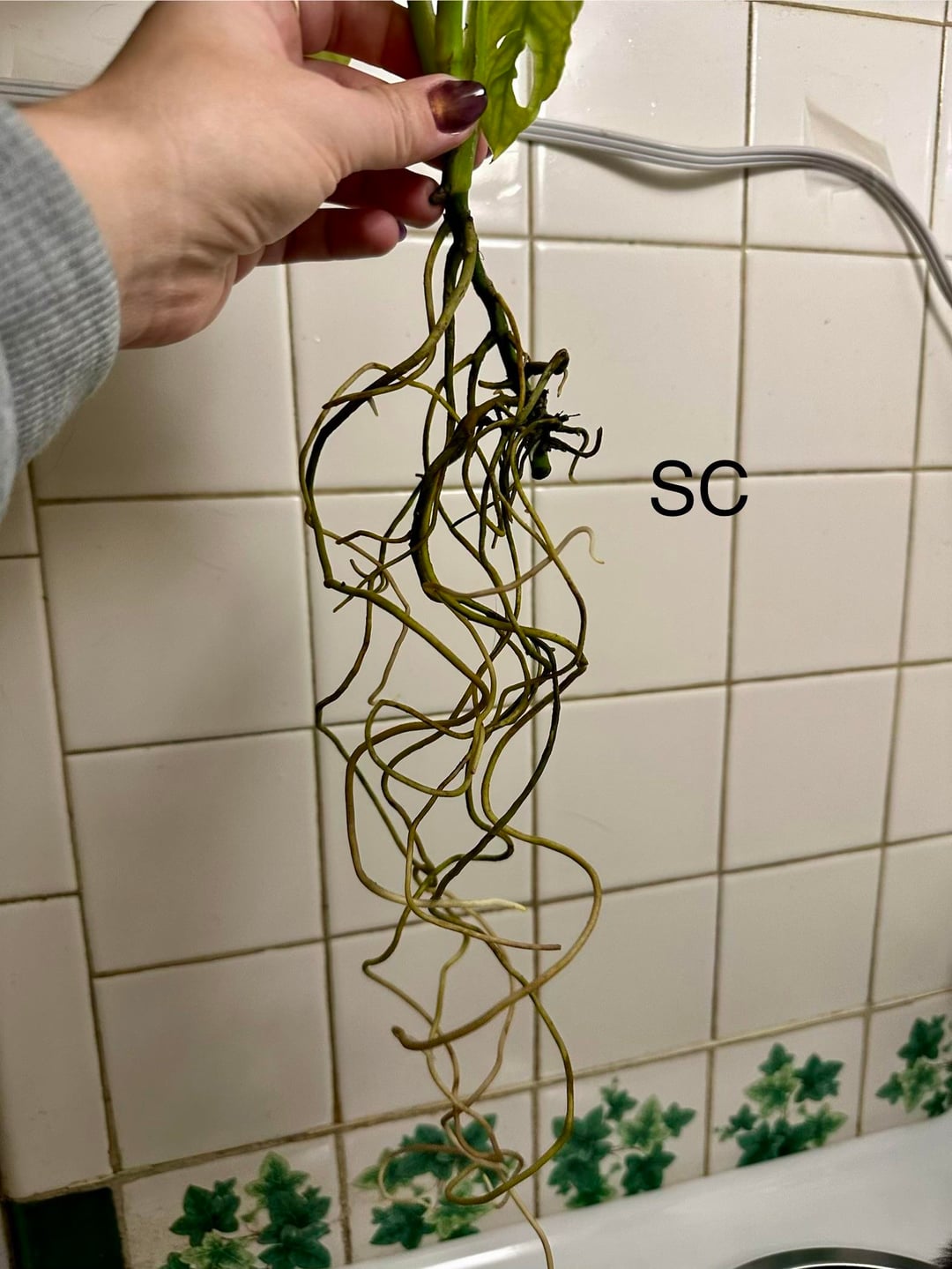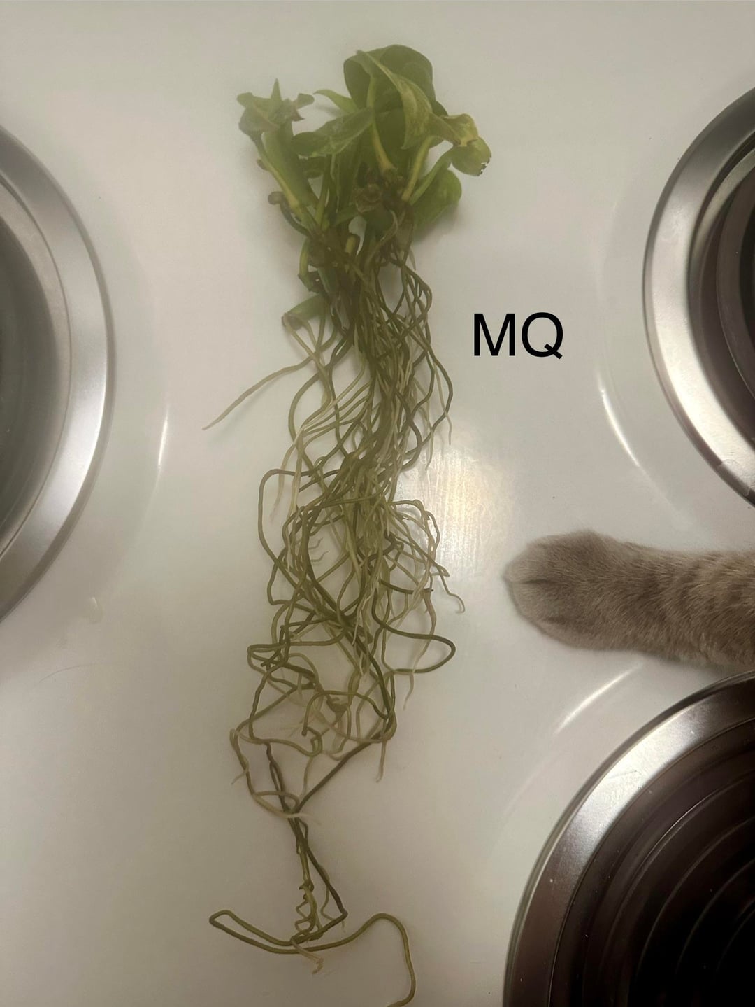 約半年前からスイスチーズモンステラ(SC)とマーブルクイーンポトス(MQ)を水やりで繁殖させています。どちらも根系がしっかりしているので、土に移すときにどのくらいの大きさの鉢に移すか検討中です。