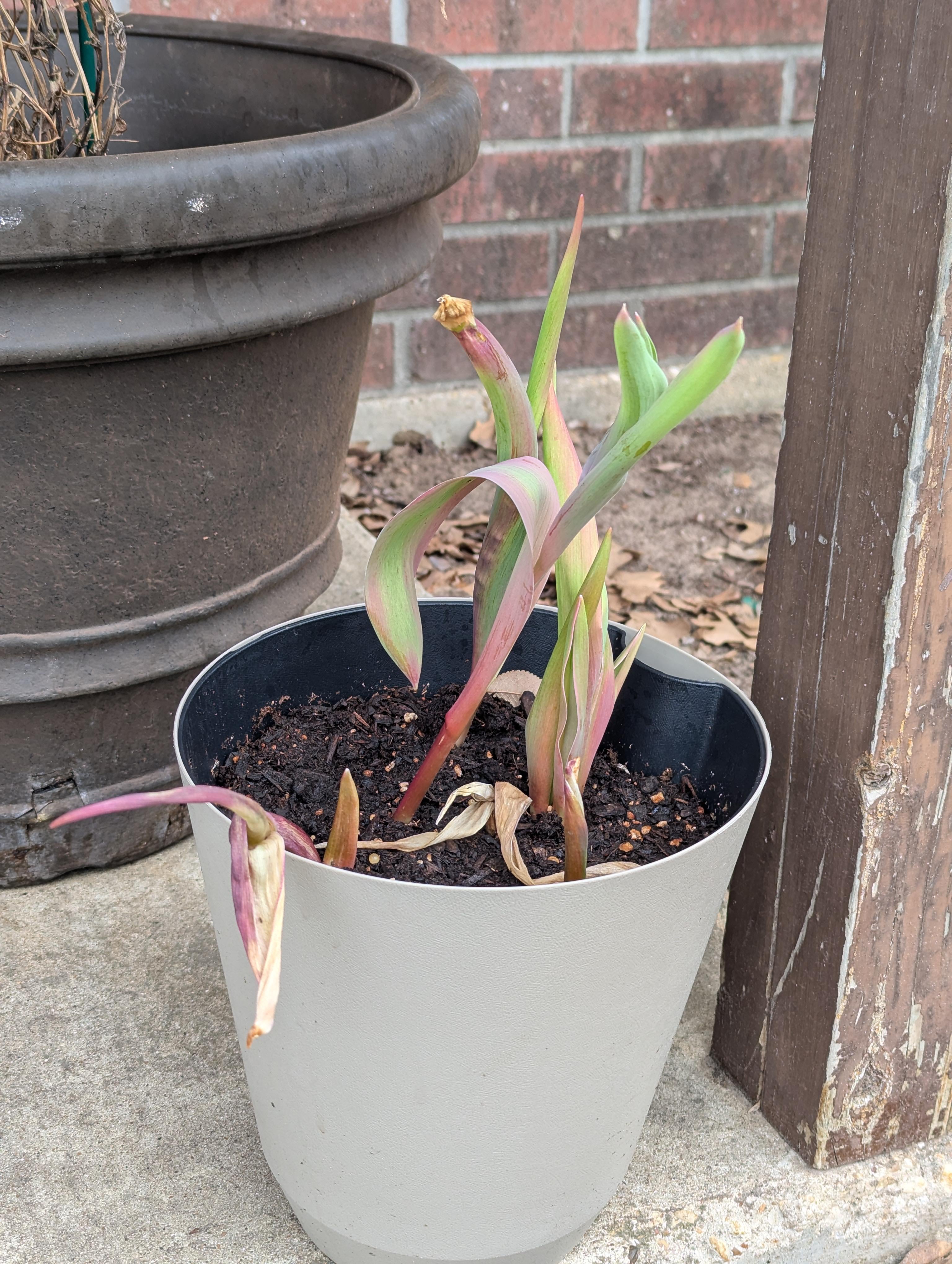 チューリップの茎は成長の早い段階で赤くなりますが、これはいつも私に起こります 😥