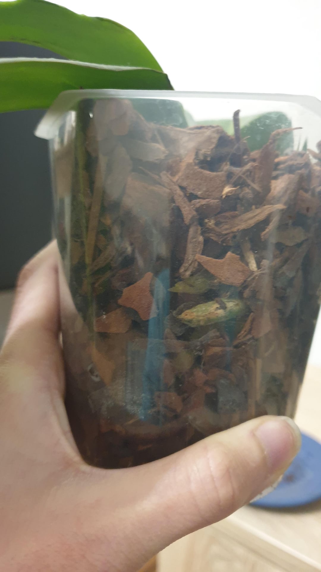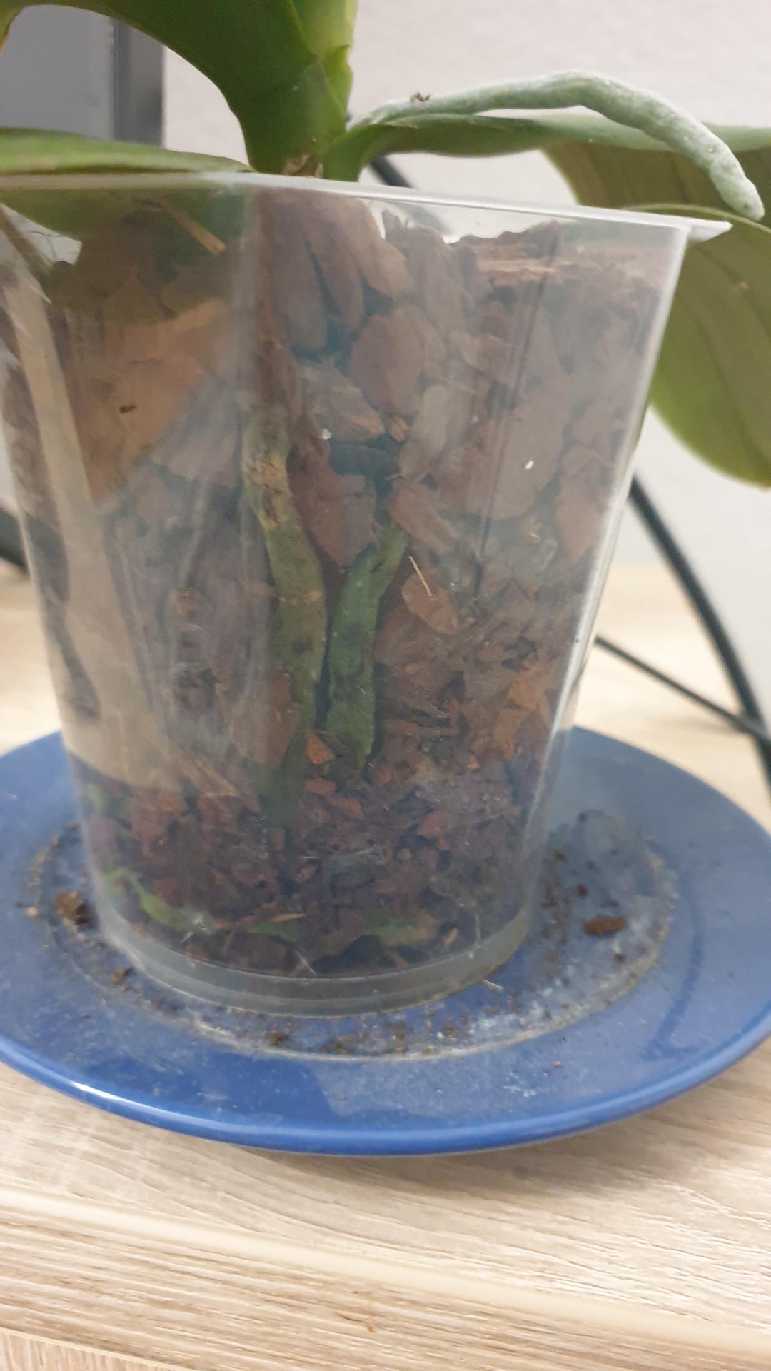最初の蘭は葉を3枚失い、残りはあまり良くありませんが、根は大丈夫です。 2本目は葉を2枚落としましたが、これも見た目が良くありません。根はあまり見えませんが、元気です。
