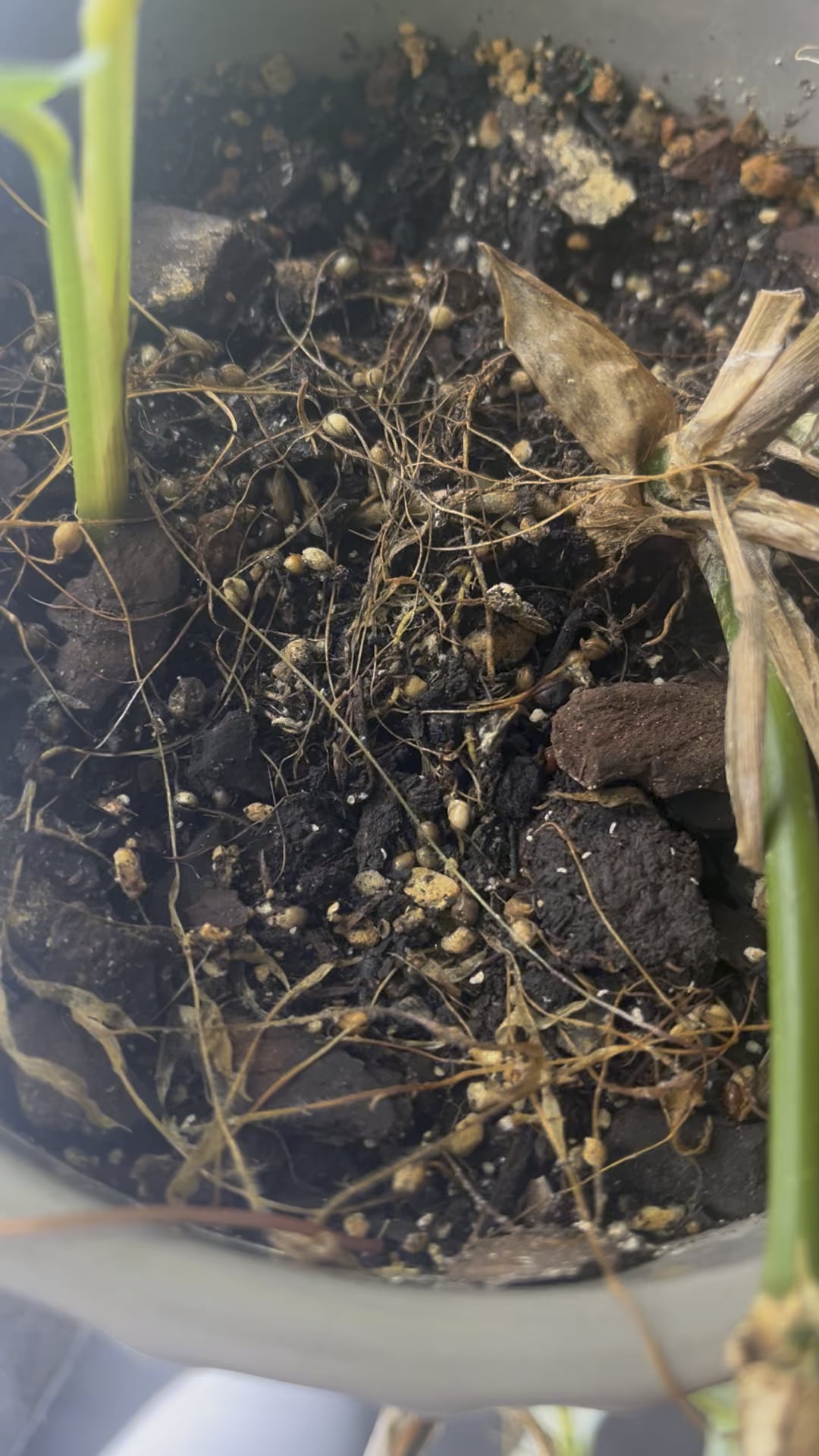 これを袋に入れてアザミウマ対策に毎日殺虫剤を散布していました。土の中のこれらのものは農薬の影響を受けていないようで、おそらく袋の中の湿気のせいで数が増えました。アザミウマの赤ちゃん?他に何か?