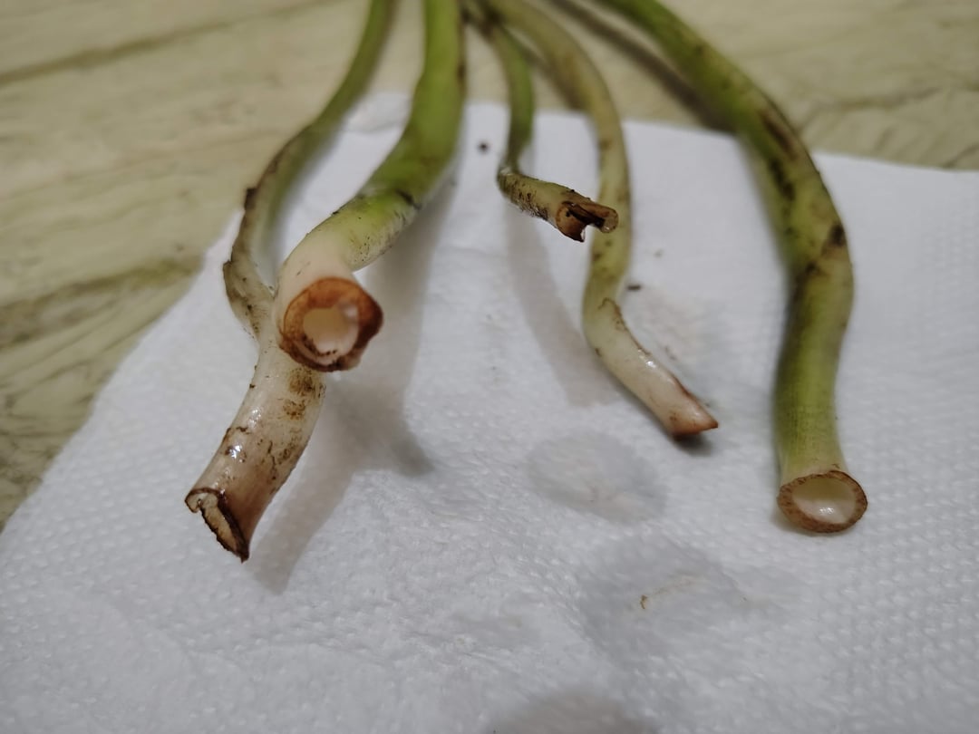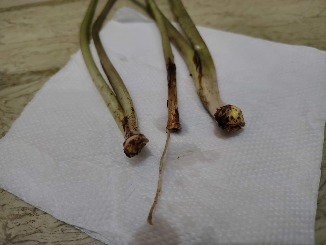 結局、自然を信じて茎を水にさらしたら、半分は枯れてしまいましたが(この投稿の最後の写真)、少し信じていた茎は根が出ました!私は少し不安になり、ゾンビの葉のコメントを思い出しました。