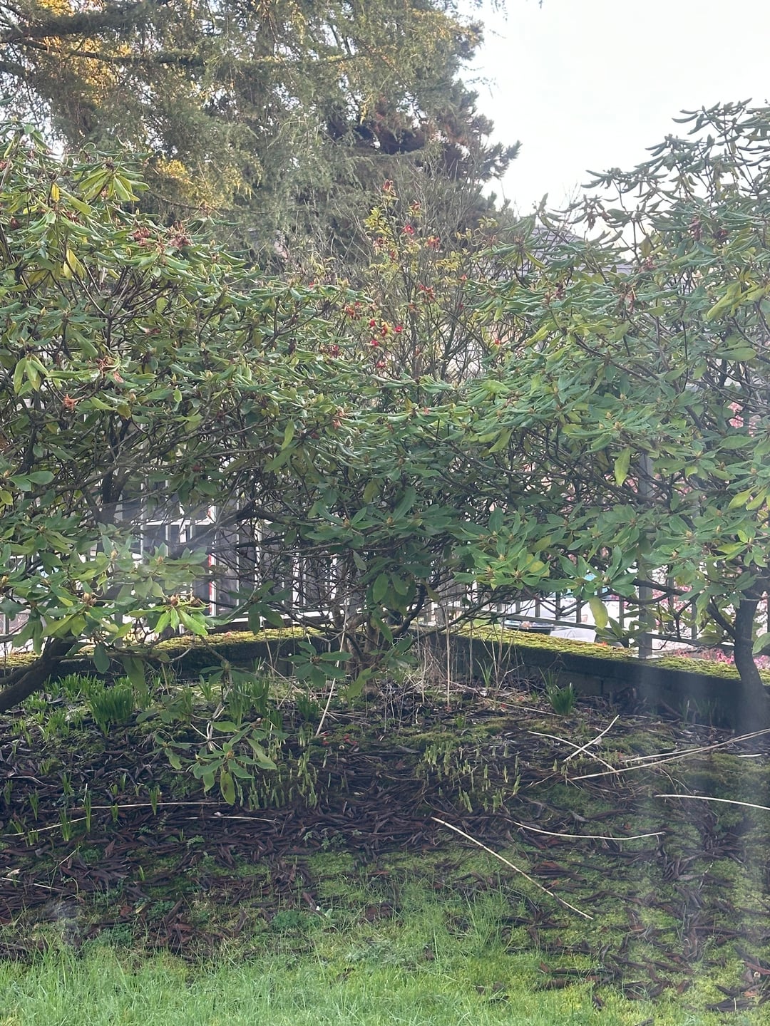 このサザンカを復活させるのを手伝ってください! 2 つのシャクナゲの間の中央の植物。近所の椿は毎年冬になるととてもきれいです(2枚目の写真)。私が見つけた唯一の情報は、この春花が落ちたらマルチをして肥料を与えるということですか?紫色の花が咲く雑草もあり、すでに球根が芽生え始めているのがわかります。今年は引いてみようかな? 助けていただければ幸いです。