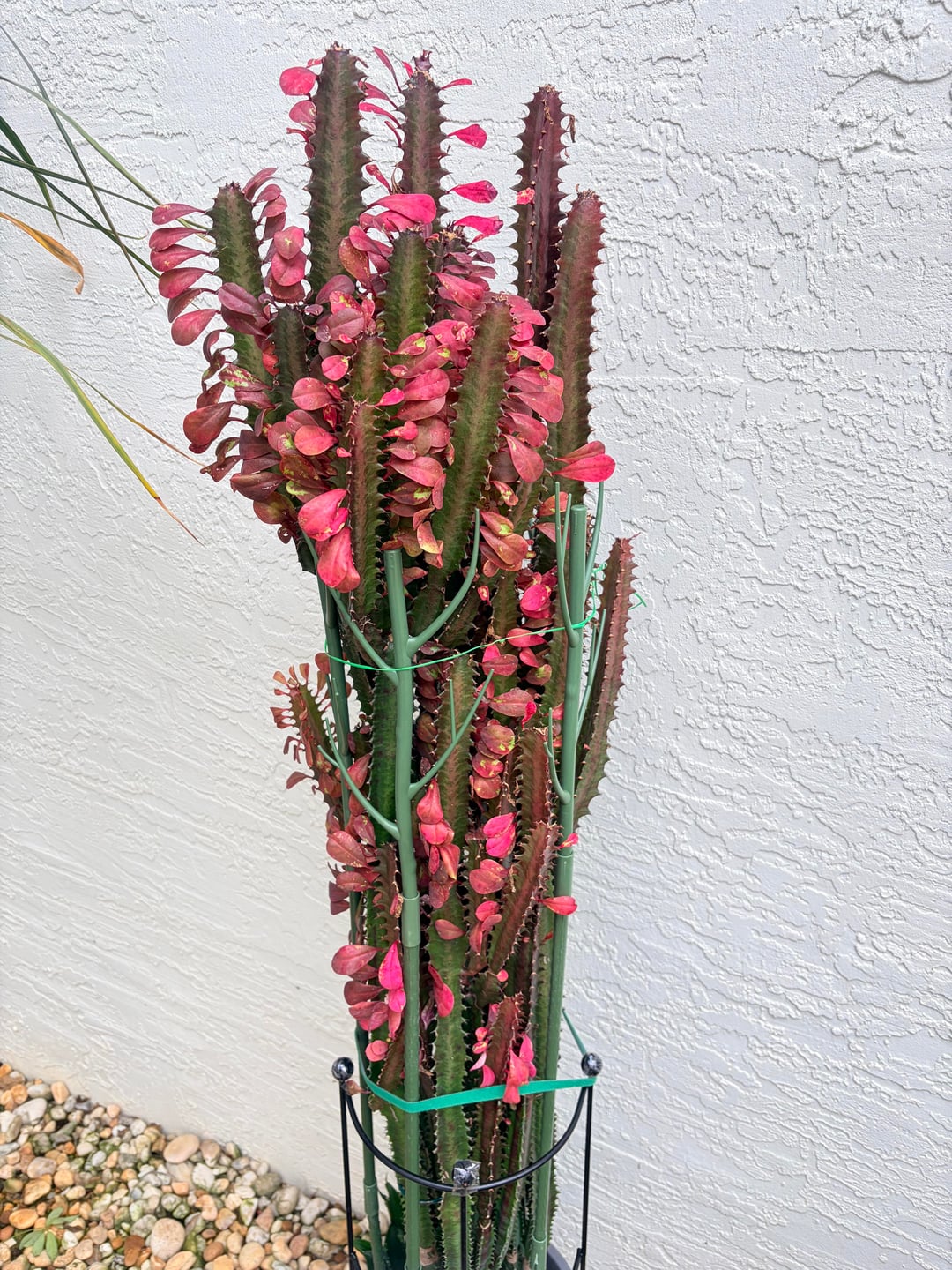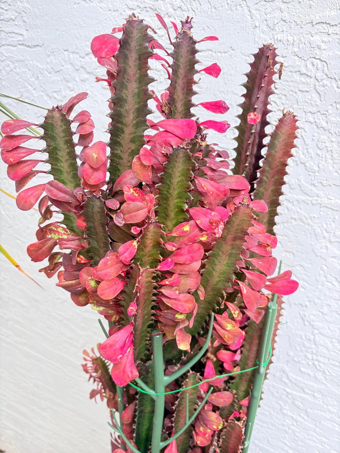 外にある私の植物は、太陽とたった今受けた寒さのせいで、とても美しい赤に色づいています。赤が大好きです!