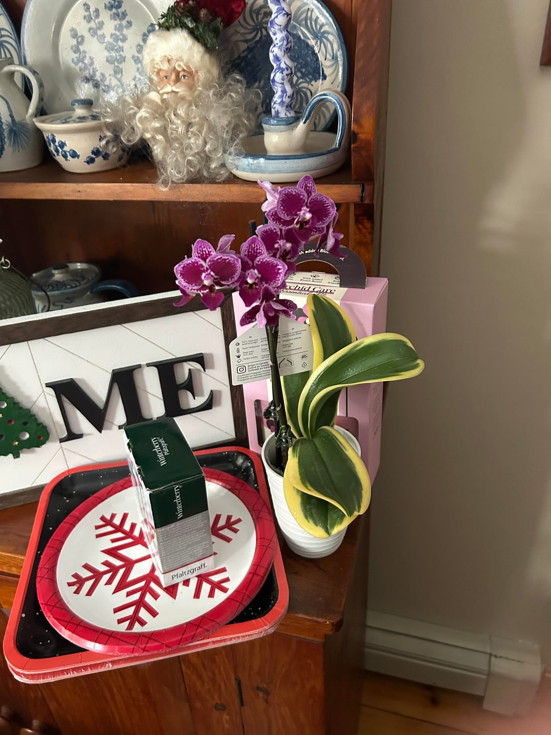 7歳の甥っ子がクリスマス前に保育園に行って、私のために美しい蘭を選んでくれました。彼は二転三転しましたが、最終的には蘭に決めました。保育園から犬と一緒に飼っても安全だと言われたことを私に必ず伝えました(心の中ではわかっています 🥹)。
