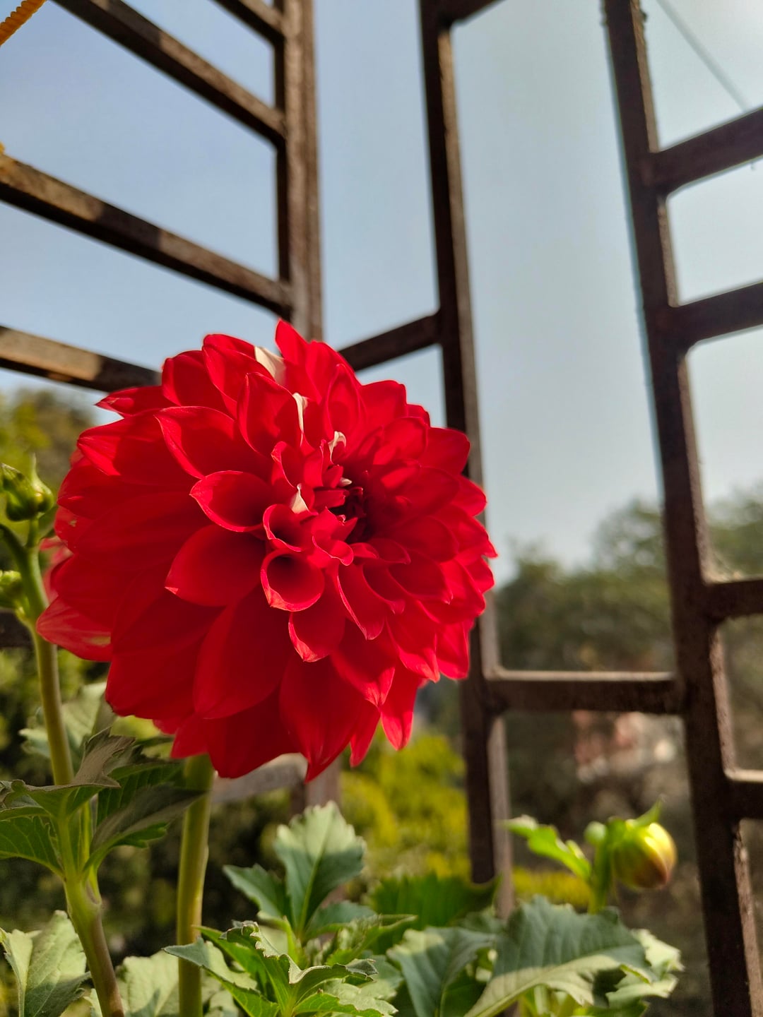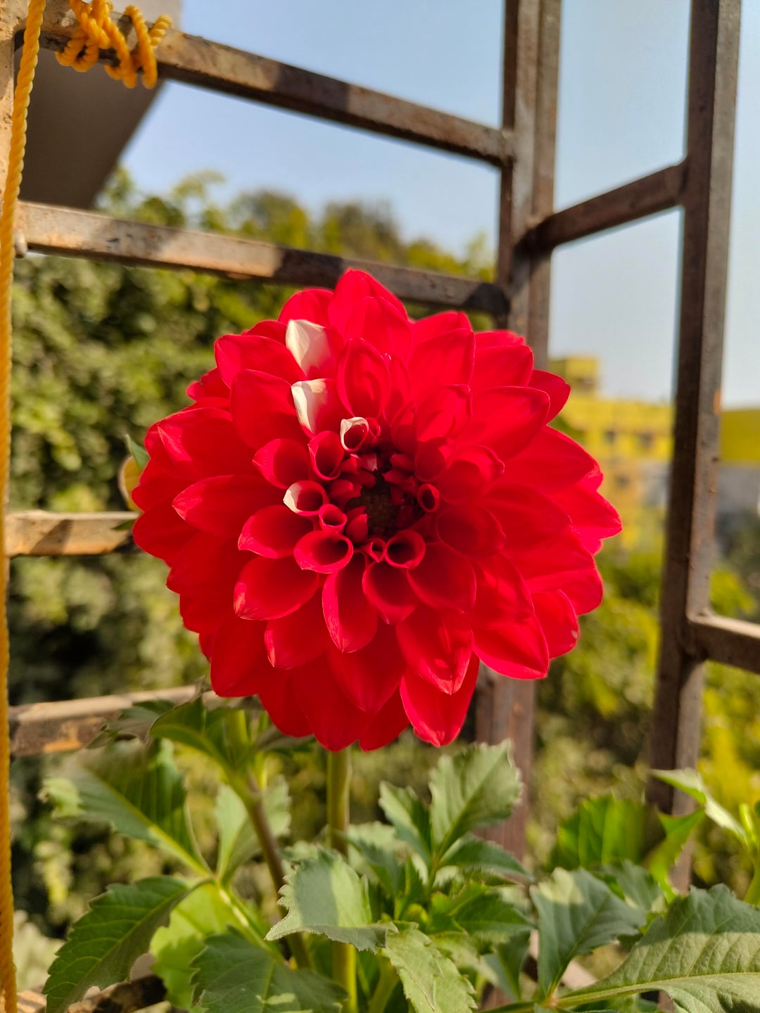 窓から見える燃えるような赤