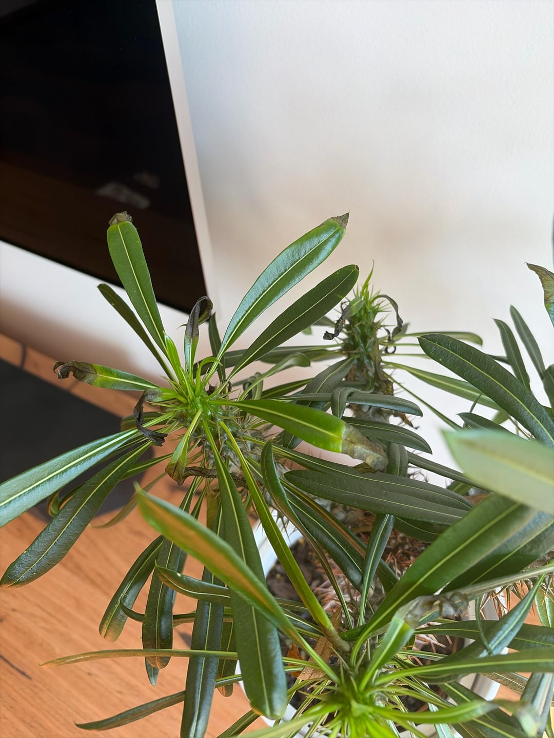 私のマダガスカルヤシの若い葉は先端から枯れ始めています。水のやりすぎ、水不足、あるいはその他の原因はありますか?北向きの窓の近くに置き、週に1回程度水やりをします(オーストラリア、メルボルンの夏)