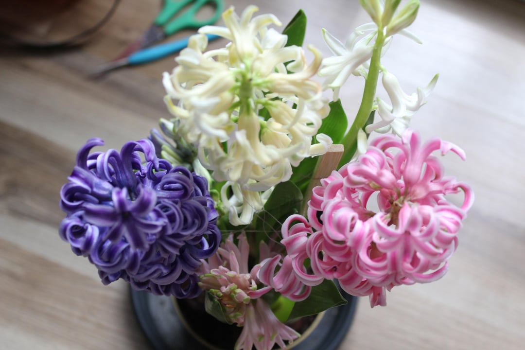 こんにちは、本格的に花の世話をするのは初めてなのですが、私のヒアシンスは大丈夫でしょうか?特に小さな黒い点が気になりました あと、もっとまっすぐに立ってほしかったので、ところどころ縛ってしまいましたが、大丈夫でしょうか? 初めてハイシンスを所有する人のための一般的なヒントはありますか?ちなみに彼女の名前はエリザベスです:)