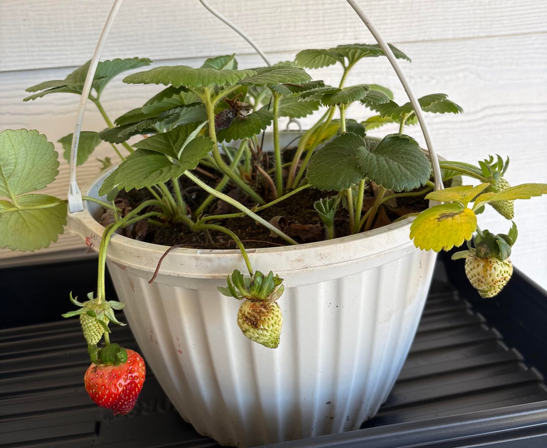 義母は私の誕生日にイチゴのハンギングバスケットの苗木と小さめのイチゴの苗木をくれました。私はイチゴの苗をうまく生かしたことがありませんし、吊り下げた苗を育てたこともありません。今日は夫が飾ってくれるので、日当たりの良い場所に置く予定です。