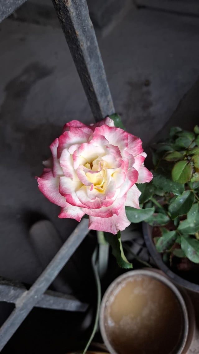 初めて植物をプレゼントしてもらいましたが、これも素晴らしいバラの植物でした。このバラは見事に見えますが、ある種の交配種だと思います (Google は、Double Delight Hybrid Tea Rose だと言いました)。 問題は、 これまでガーデニングをやったことがない 😬😅 でも、私はこの植物の世話をして、健康に保ちたいと思っています。基本的に、皆さんの助けが必要です。今のところ、いくつか質問があります。