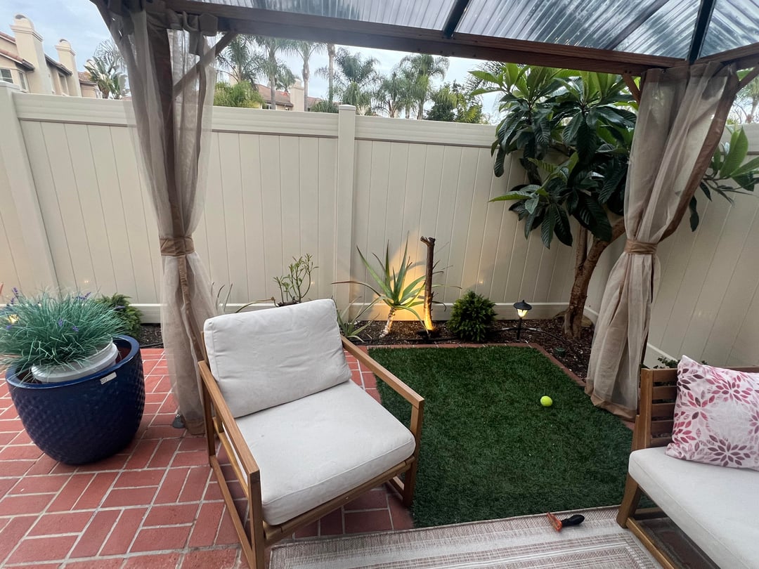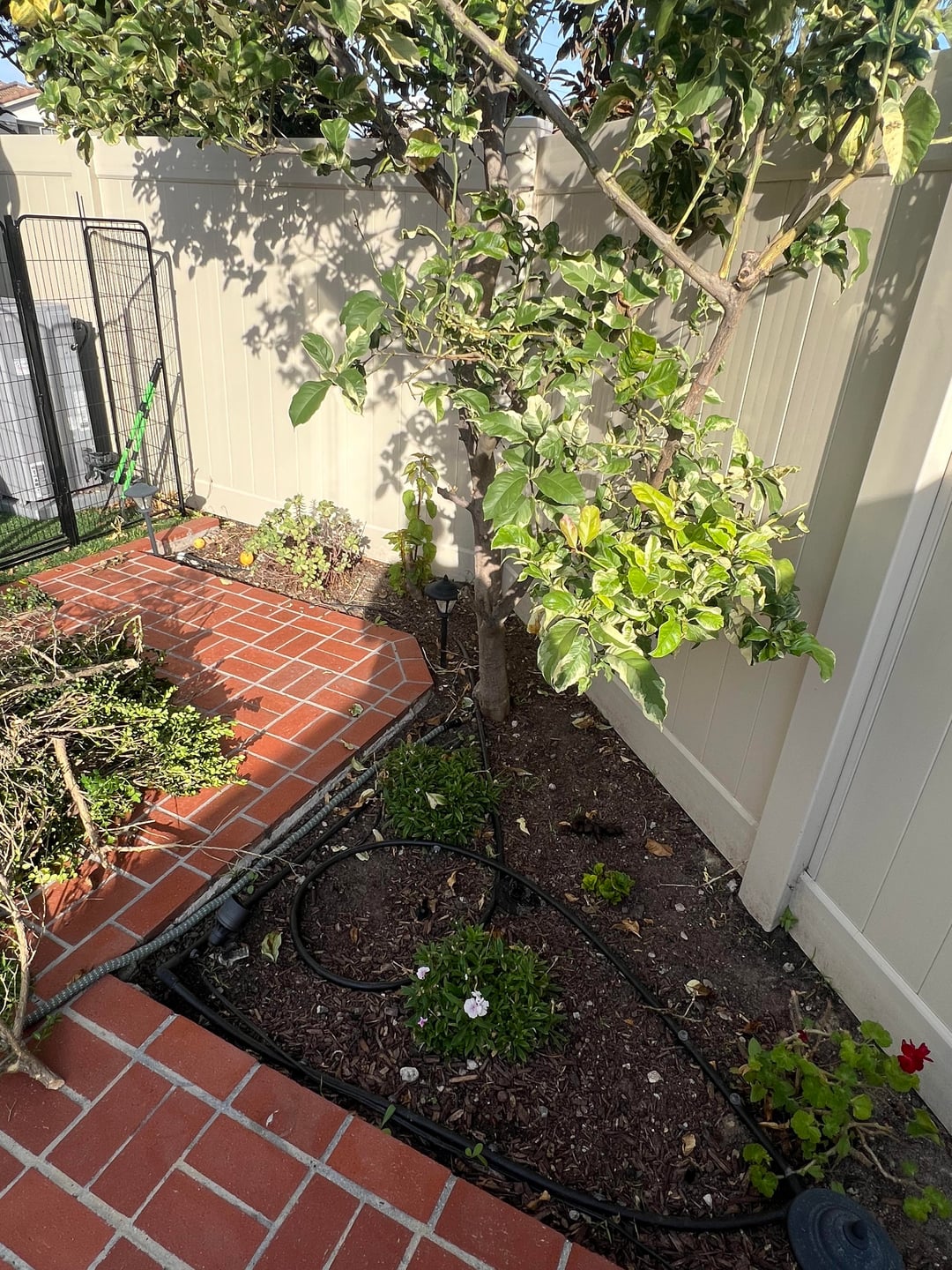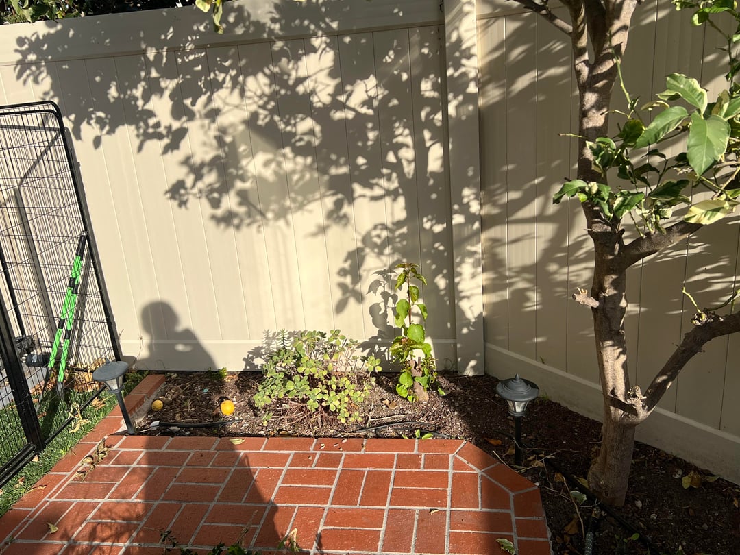 ある隅にはレモンの木があり、別の隅にはビワの木があります。どちらも宿泊中です。ビワの木は少し日陰を作る傾向があります。