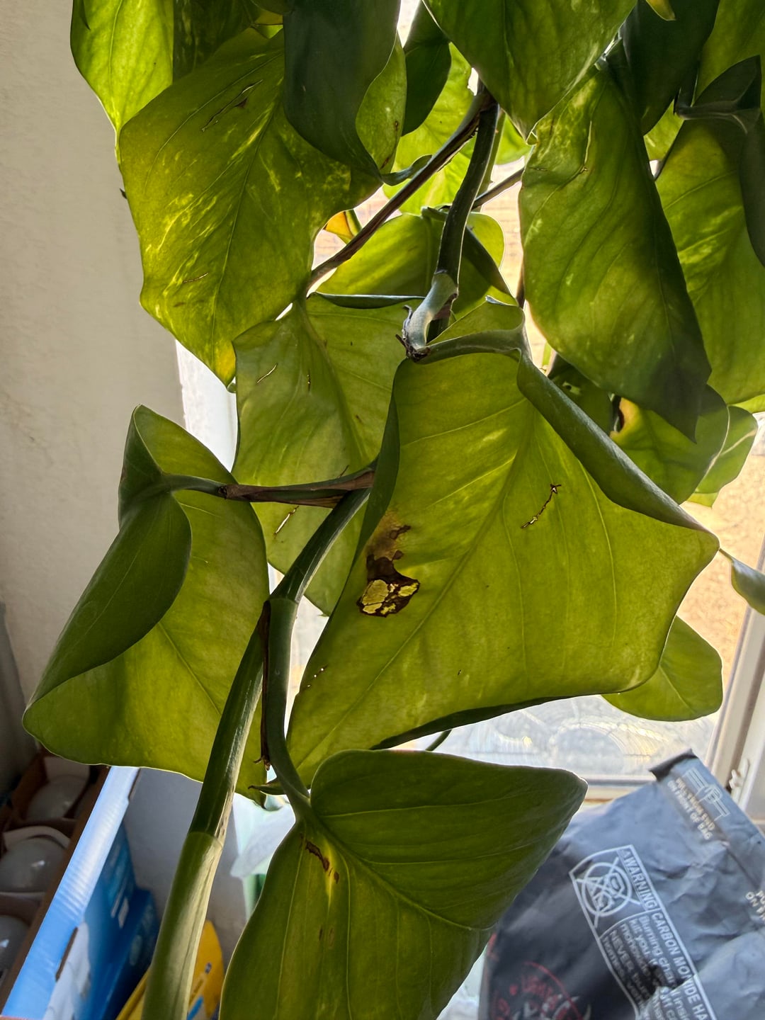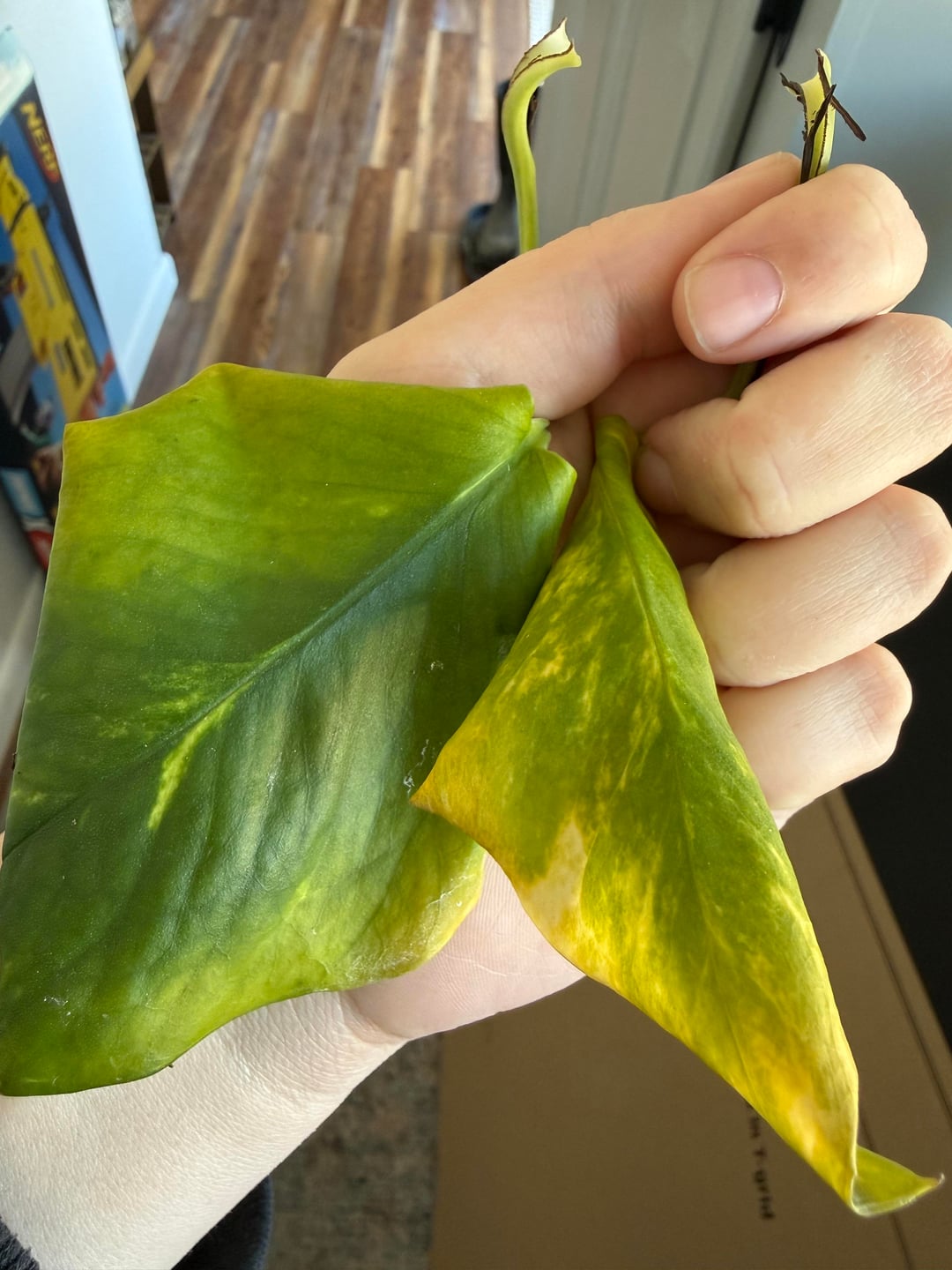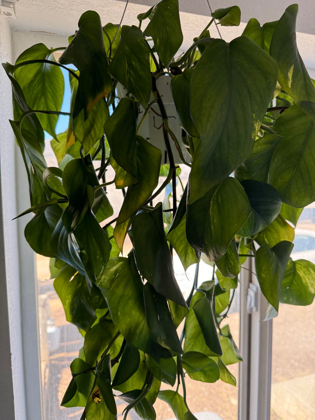 私のポトスを手伝ってください。 1ヶ月ほど前に購入しました(最後の写真)。まだ苗鉢のままで植え替えもしていません。乾いたら水やりをし、完全に乾いてからまた水やりをしています。ポットには水はけの良い穴が付いています。購入して以来、最適な照明を見つけようとして、家の中で数回移動しました。東向きの窓際の本棚に立てかけていましたが、光があまり当たらないようなので、西向きの窓に吊るして今の場所に置きました(写真)。窓辺に移す前から葉が落ちていることに気づいていたのですが、1週間前に土が乾いていたのでたっぷりと水を与えたのですが、今週に入ってから毎日数枚の葉を落としていました。自然に落ちるわけではありませんが、黄色くなってすぐに切れてしまいます。水なしでもっと放置したほうがいいでしょうか?私はちょっと途方に暮れていて、この男のことをとても悲しく思っています。なぜなら、私が彼を迎えたときはとても丸くてふさふさしていたのに、今では葉が黄色くなって丸まって、ぐったりとして悲しそうに見えるからです。