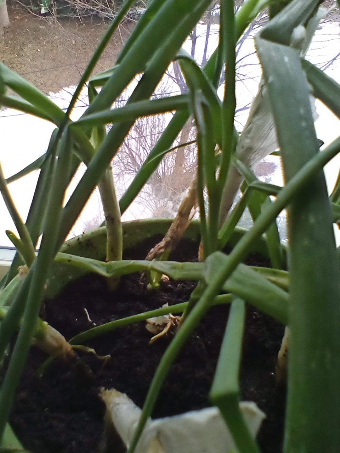 数か月前に、生ゴミからニラとネギを再栽培してみることにしました。正直に言って、彼らは素晴らしかったです!常に強くて新しい成長があり、根は暴れまわり、ベイクドポテト用の新鮮な挿し木を数回採取することさえできました。