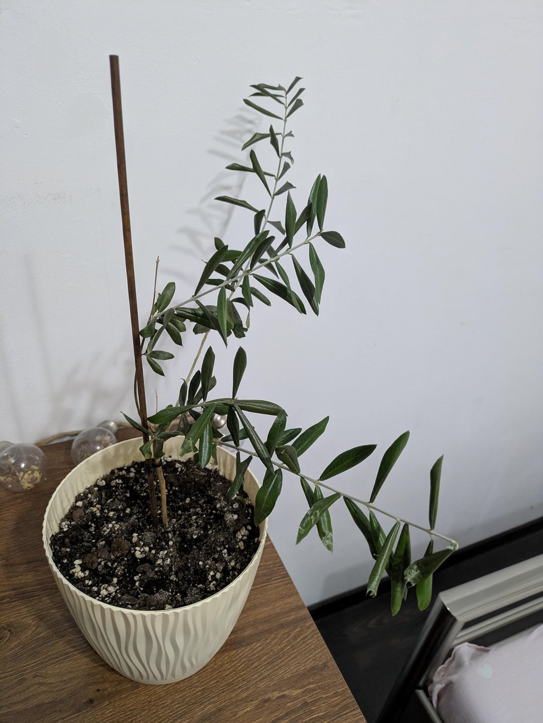 用土は緑色植物用の土にパーライト、ヤシ殻、樹皮などを60~70%混ぜたものを使いました。オリーブの木には先週1回、そして3週間ほど前にポタリングのときに1回水をやりました。