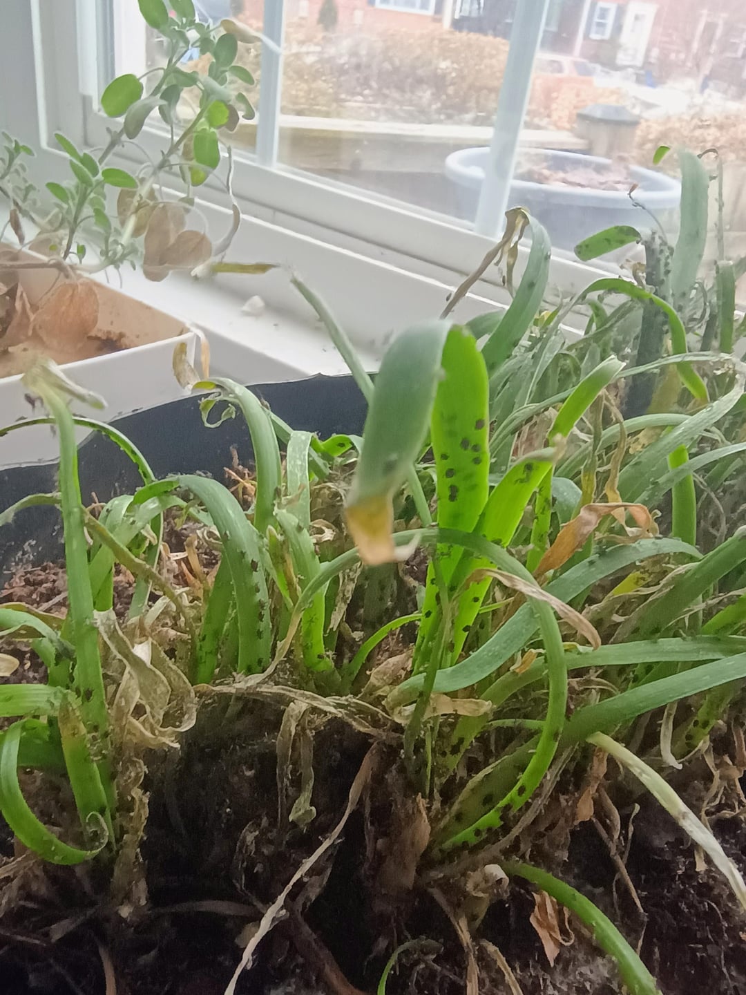 数カ月前に冬に備えて屋内に入れておいたニラが、突然ニラであふれかえりました。