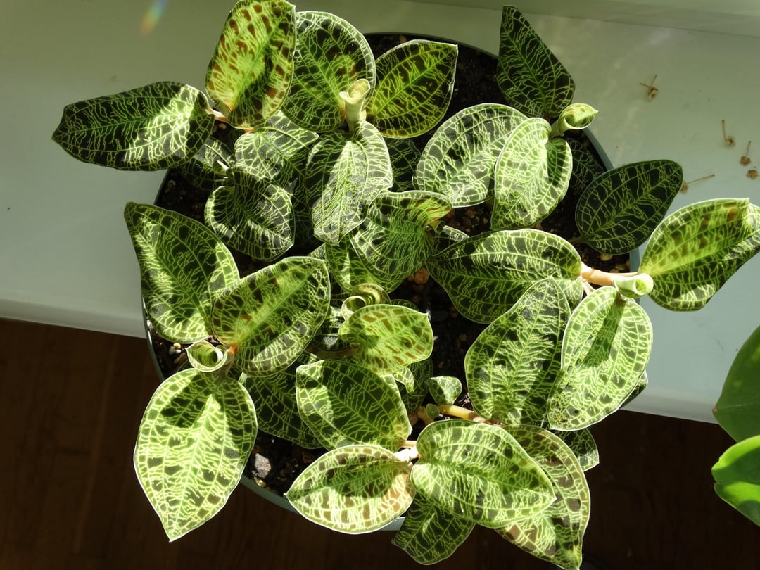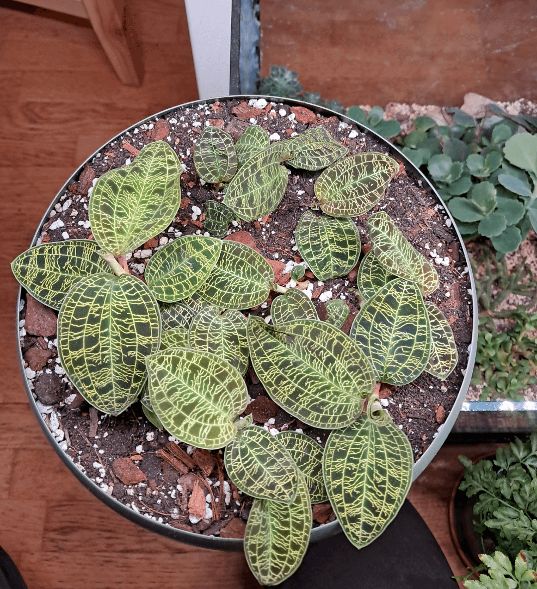 約3か月前、ジュエルランを植え替えて、3つの別々のランを1つのかわいいボウルに入れました。それ以来、彼らはすくすく育っています♡ 彼らはさらに多くの植物に囲まれたグローライトの真下に座っていて、その場所が本当に気に入っているようです。彼らがますます成長するのを見るのが待ちきれません ^