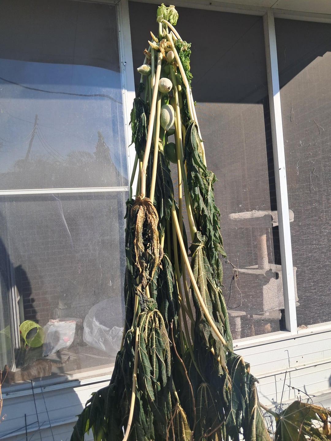 私はゾーン 9a にいるのですが、パパイヤの木が枯れてしまいました。こんな事が起こるのは初めて見た。枝は残したまま自然に落ちるのを待つべきでしょうか、それとも切り落としたほうが良いのでしょうか?もしそうなら、幹もどのくらいの高さで切りますか?色々なものを読み続けています。来年はもっとパパイヤが欲しいです。 (幸いにも凍結前に収穫できました)