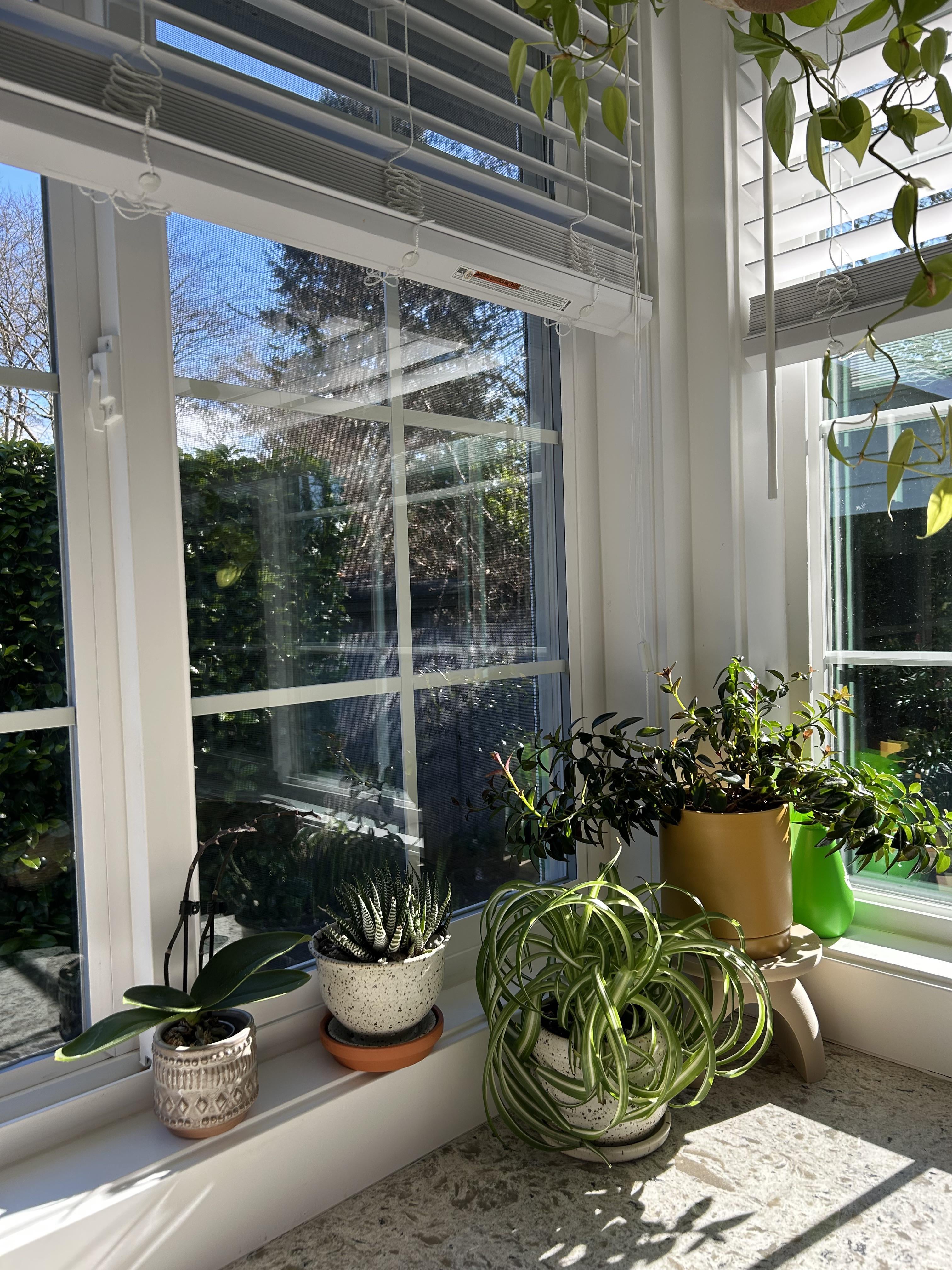 左端の蘭がコナカイガラムシに完全に侵されていることに今気づきました。私は植物のママになったばかりなので、数週間前から注目していた白い毛羽立ったものが何だったのか、今ようやく気づきました。 🤦♀️