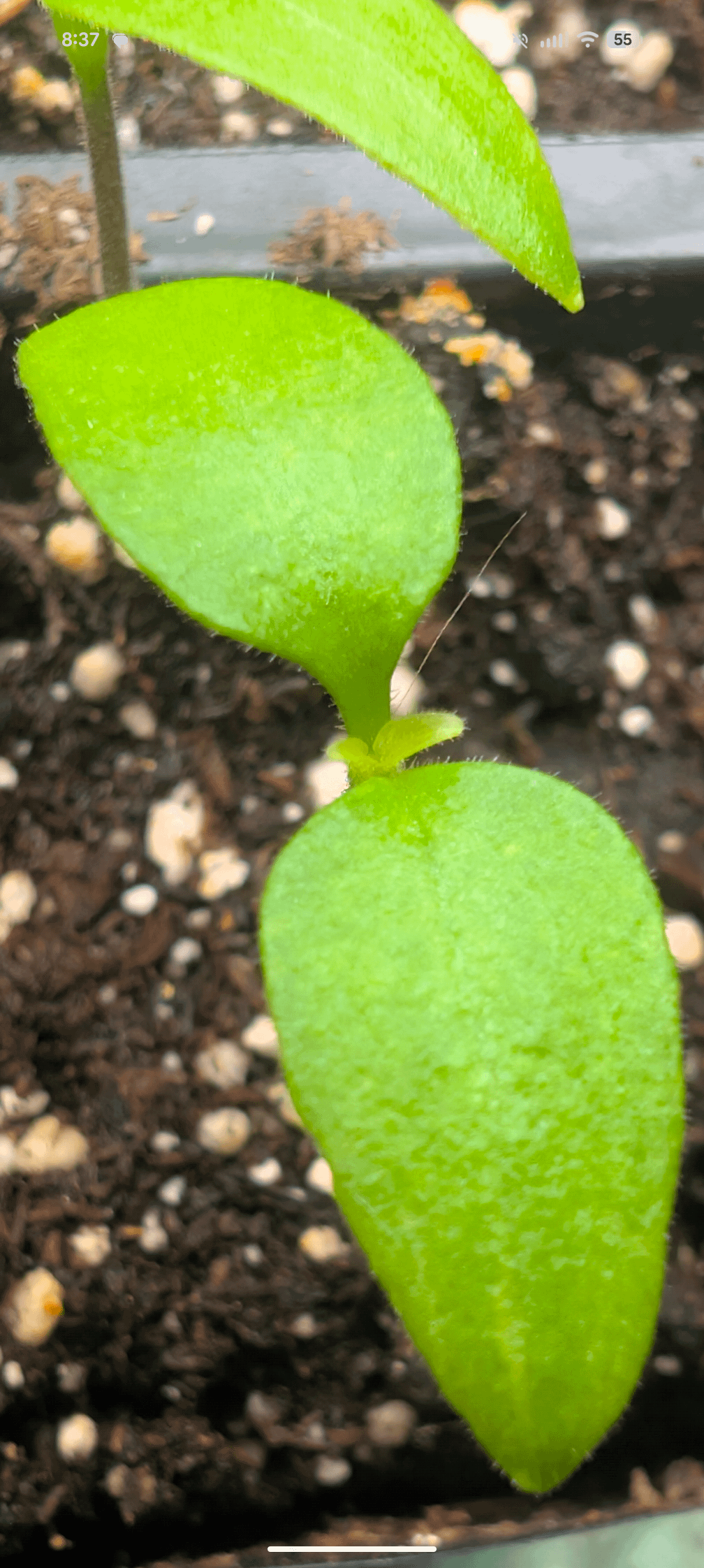 8個のゴーストペッパーの種を発芽させようとして成功したので、誇り高きペッパーお父さんのように最初の本葉を見せびらかしたいと思いました。