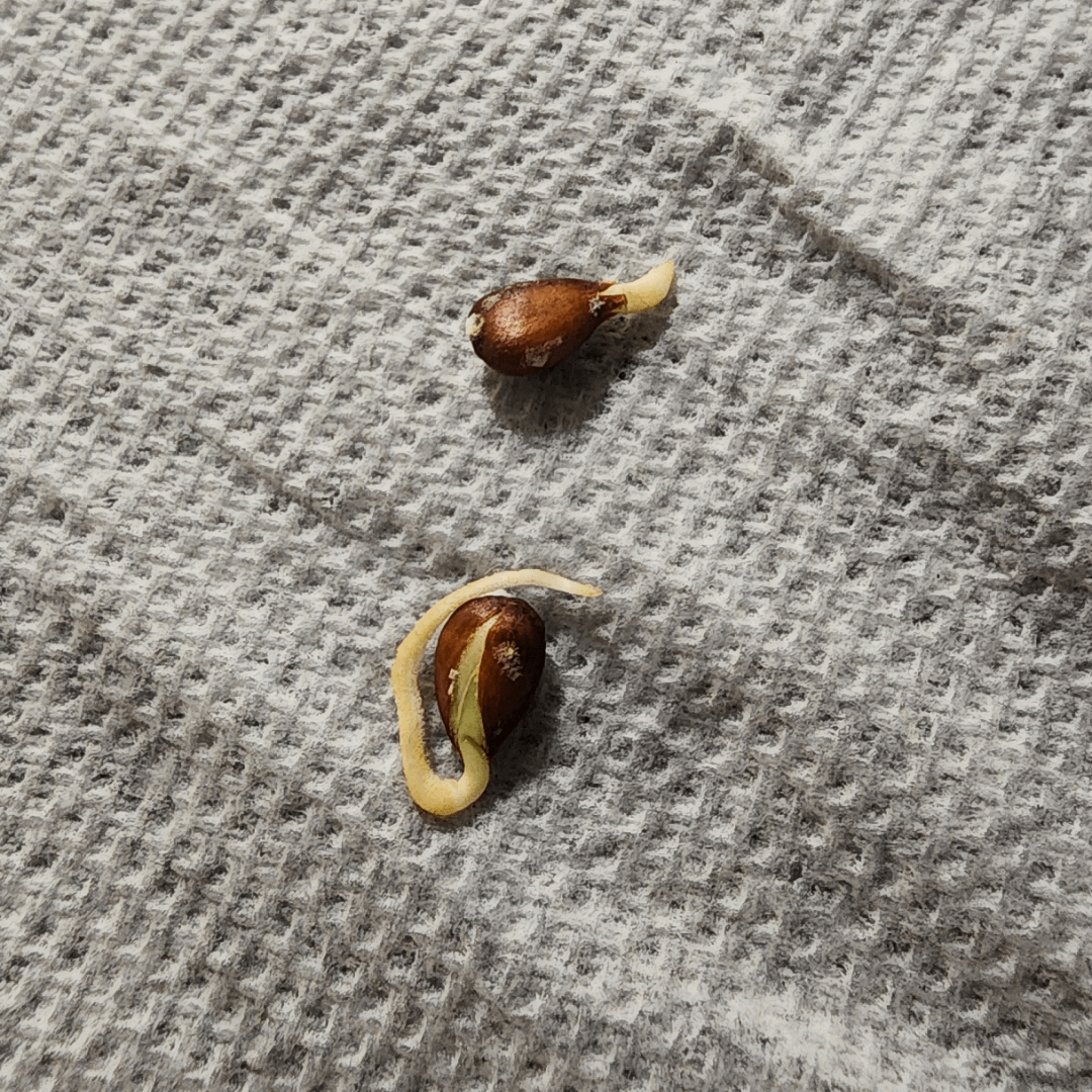 夫はリンゴを食べ終えて、終わった種を 2 つ見つけました。植えるつもりです