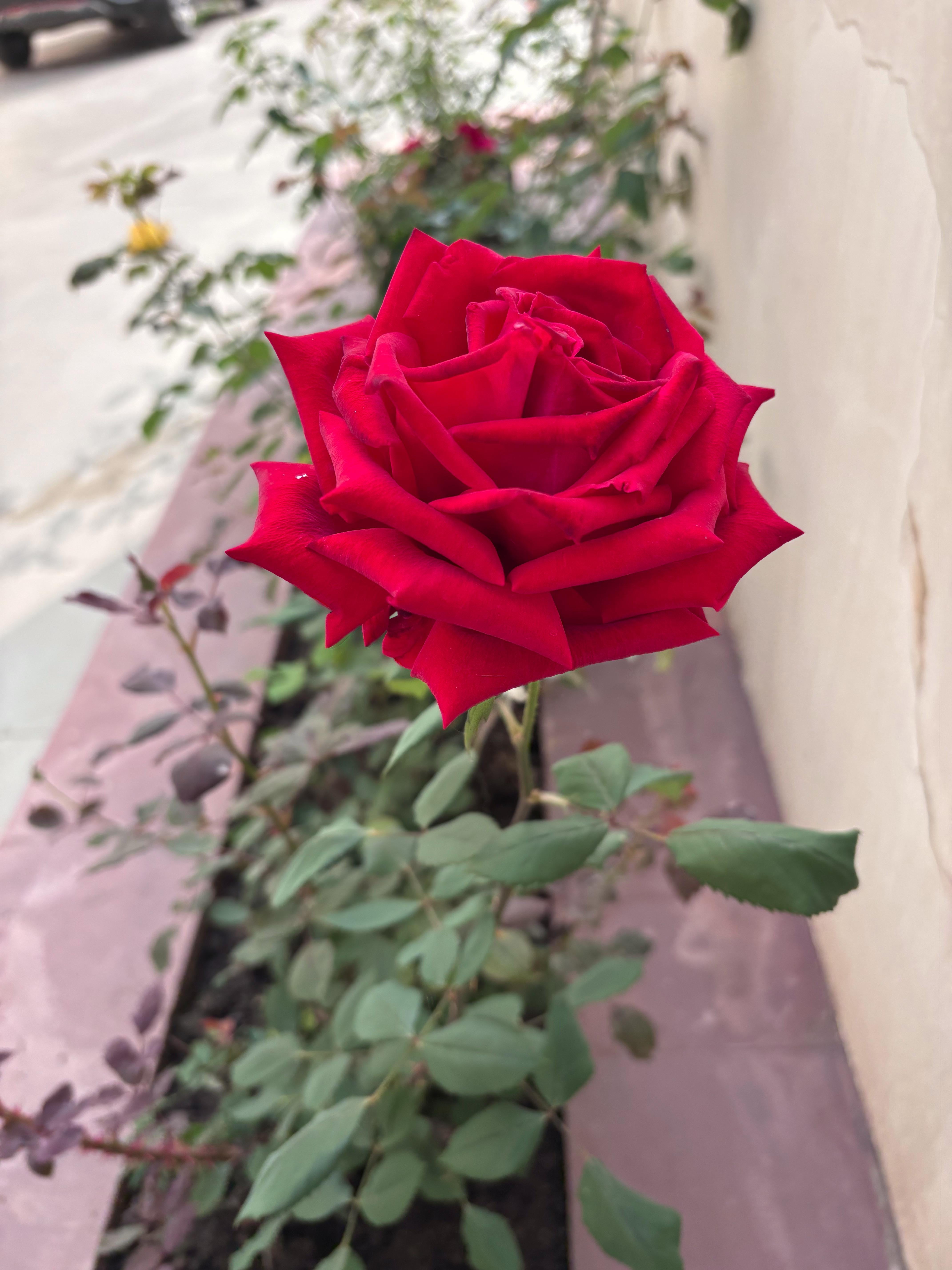 咲く赤いバラ おはようございます