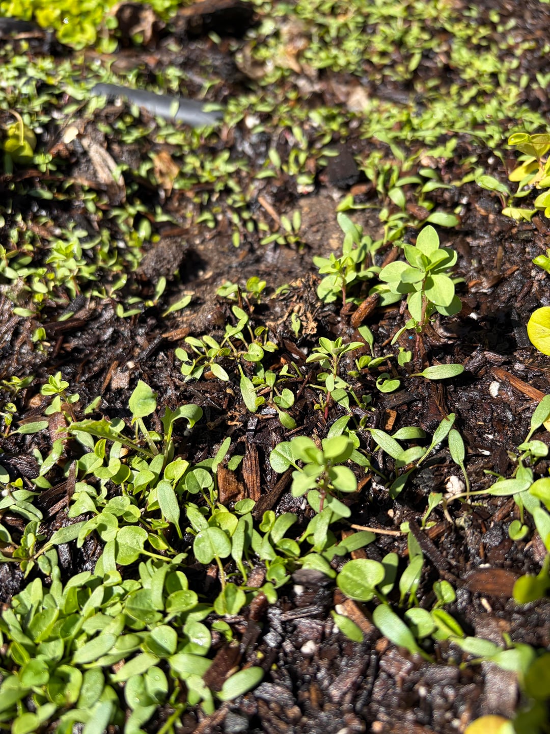 数週間前、私たちは玄関のテラスにディコンドラの種を植えました。一部は順調に成長していますが(低くて土に近い)、別の種と思われる部分(背が高く、葉が多く、茎が赤い)も成長しています。ここの誰かがそれを特定し、ディコンドラが完全に成長するために除去する必要がある雑草であるかどうかを判断するのを手伝ってくれることを期待していました。ありがとう!