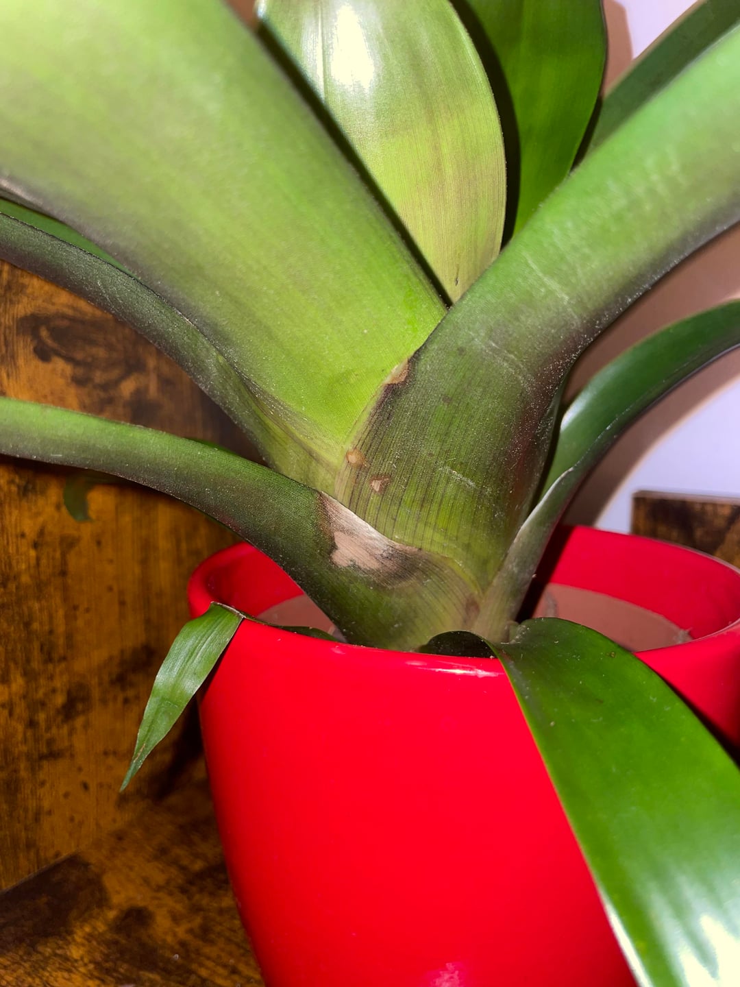 これは1月にプレゼントでもらったグズマニアです。私がやったように中央のカップに水をやるようにという指示が与えられた花屋から購入しました。彼女は鮮やかな赤色を失い、黄色の先端が茶色っぽくなり始めました。また、底近くには、他の葉の折り目からも始まって​​いる乾燥したスポットがあります。朝の光と太陽が直接当たることはない位置にあります。窓や温度変動を引き起こす可能性のあるものの近くに置かないでください。あらゆる種類のアドバイスと助けをいただければ幸いです。最後の写真は、私が彼女を迎えたときの彼女の様子です。よろしくお願いします