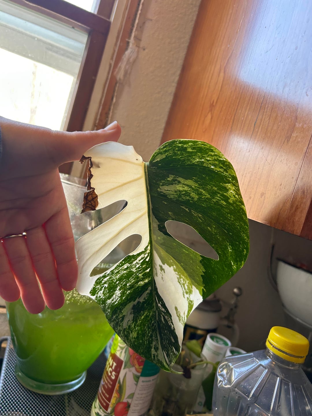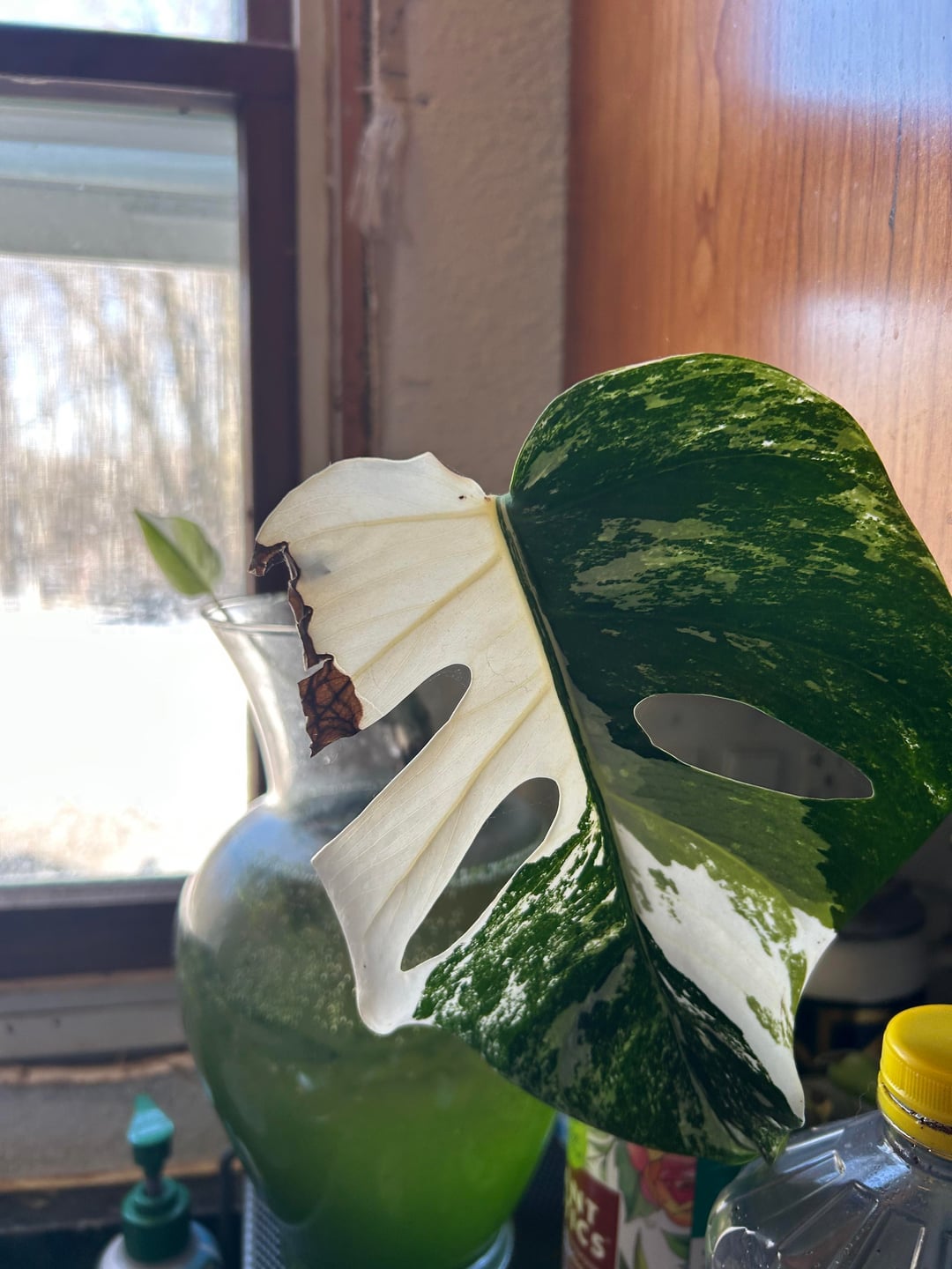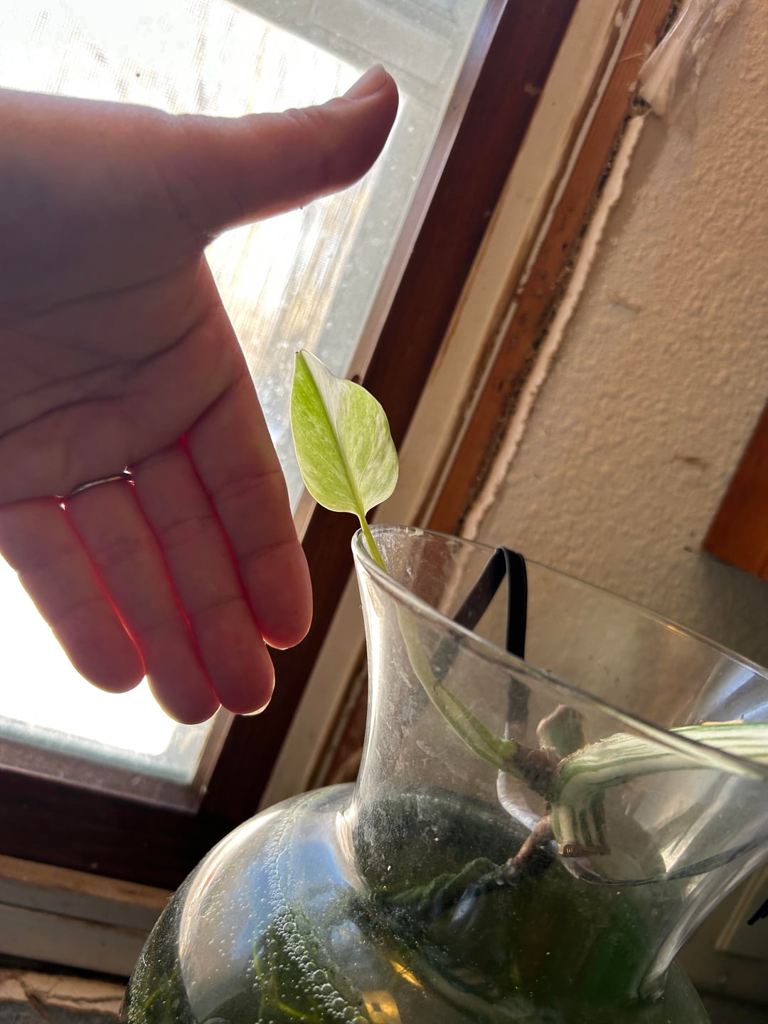 数か月前に水の入った花瓶に座ってアルボカットを受けました。やっと最初の葉が出てきて、小さくてとても可愛いです 🤣🥰💕💕💕