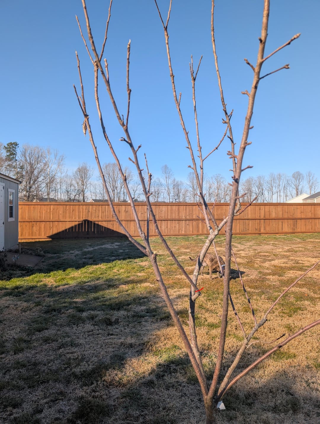 最初の 2 つはアンブロシアのリンゴの木です。縦に伸びすぎてどうしたらいいのかわかりません。彼らにそんなことをさせるべきではないですよね? 私のガーラは、変な角度で伸びている枝を取り除くために、赤線の位置で切るだけでよいでしょうか?