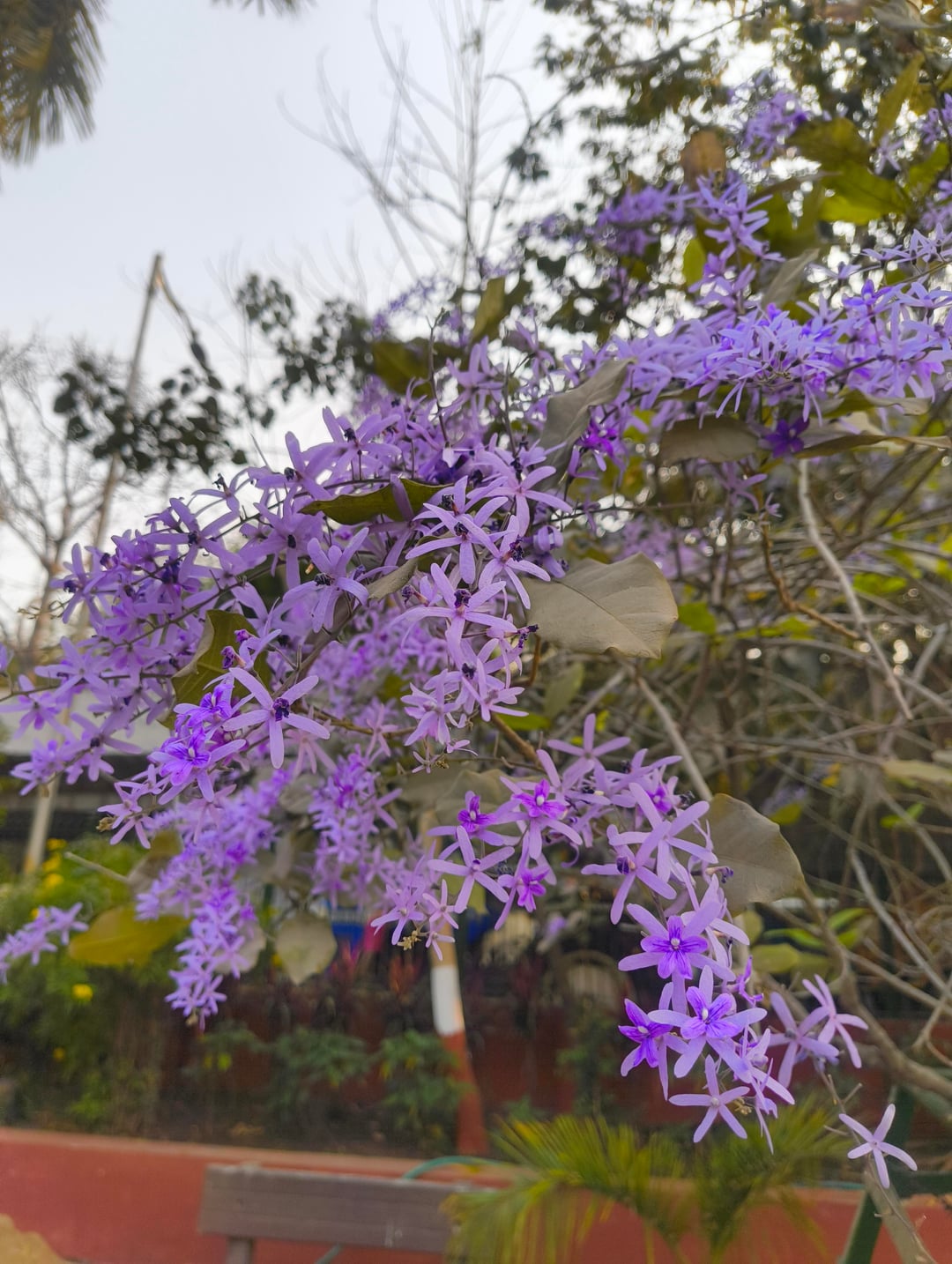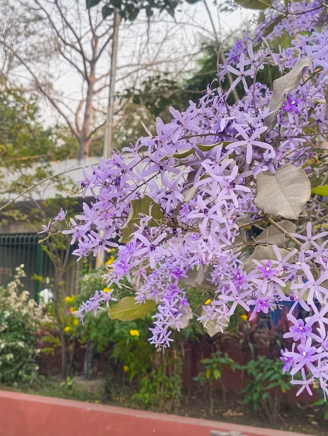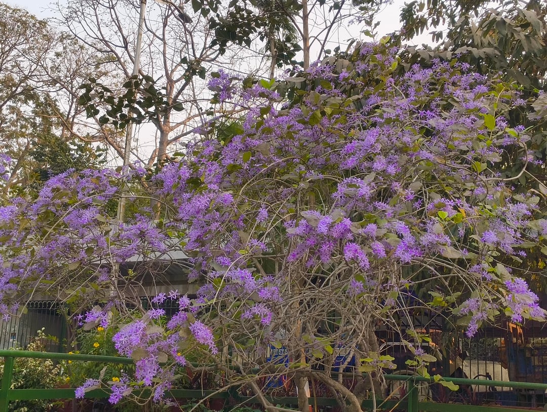 別名パープルリースとも呼ばれ、春が近づくとたわわに咲きます。近くの庭で美しい植物を発見