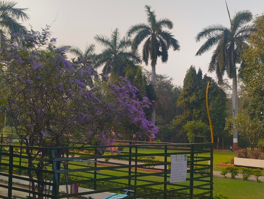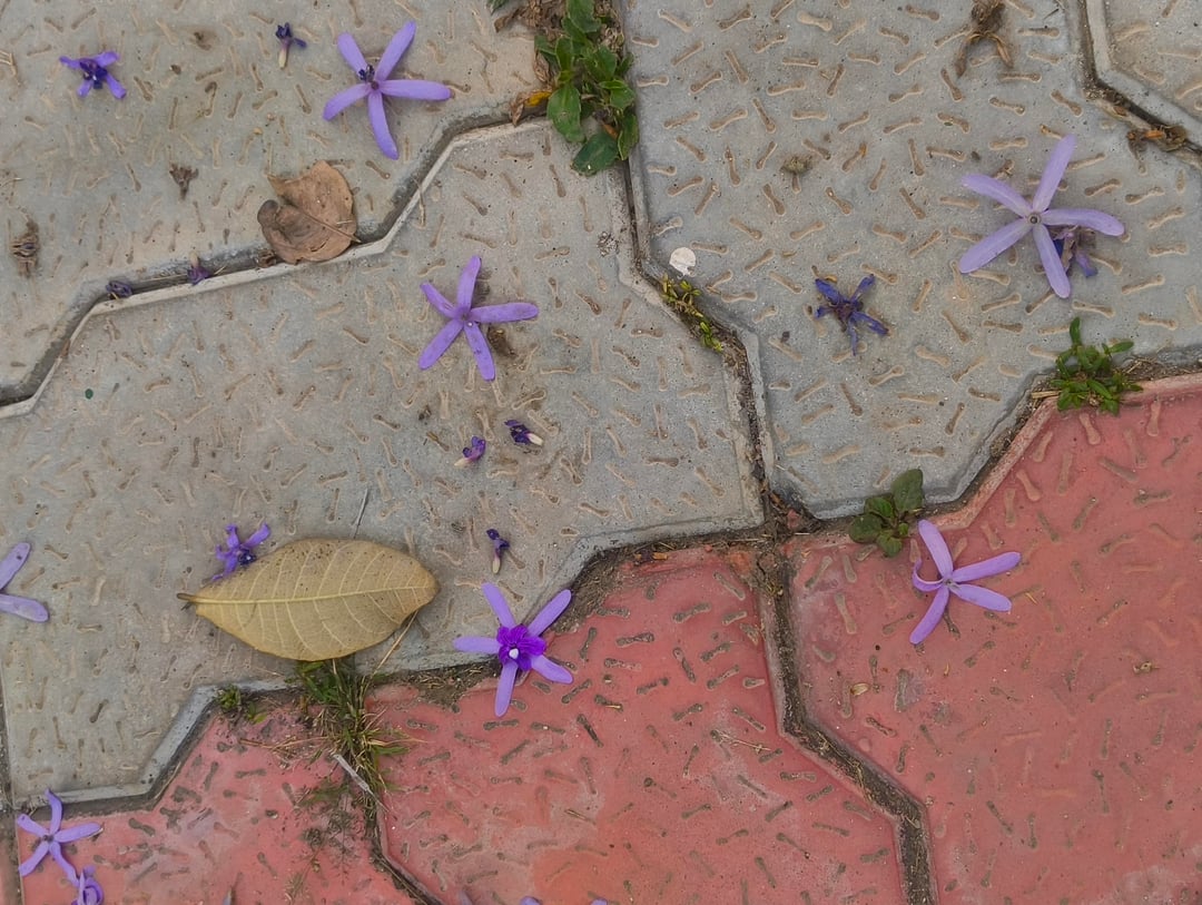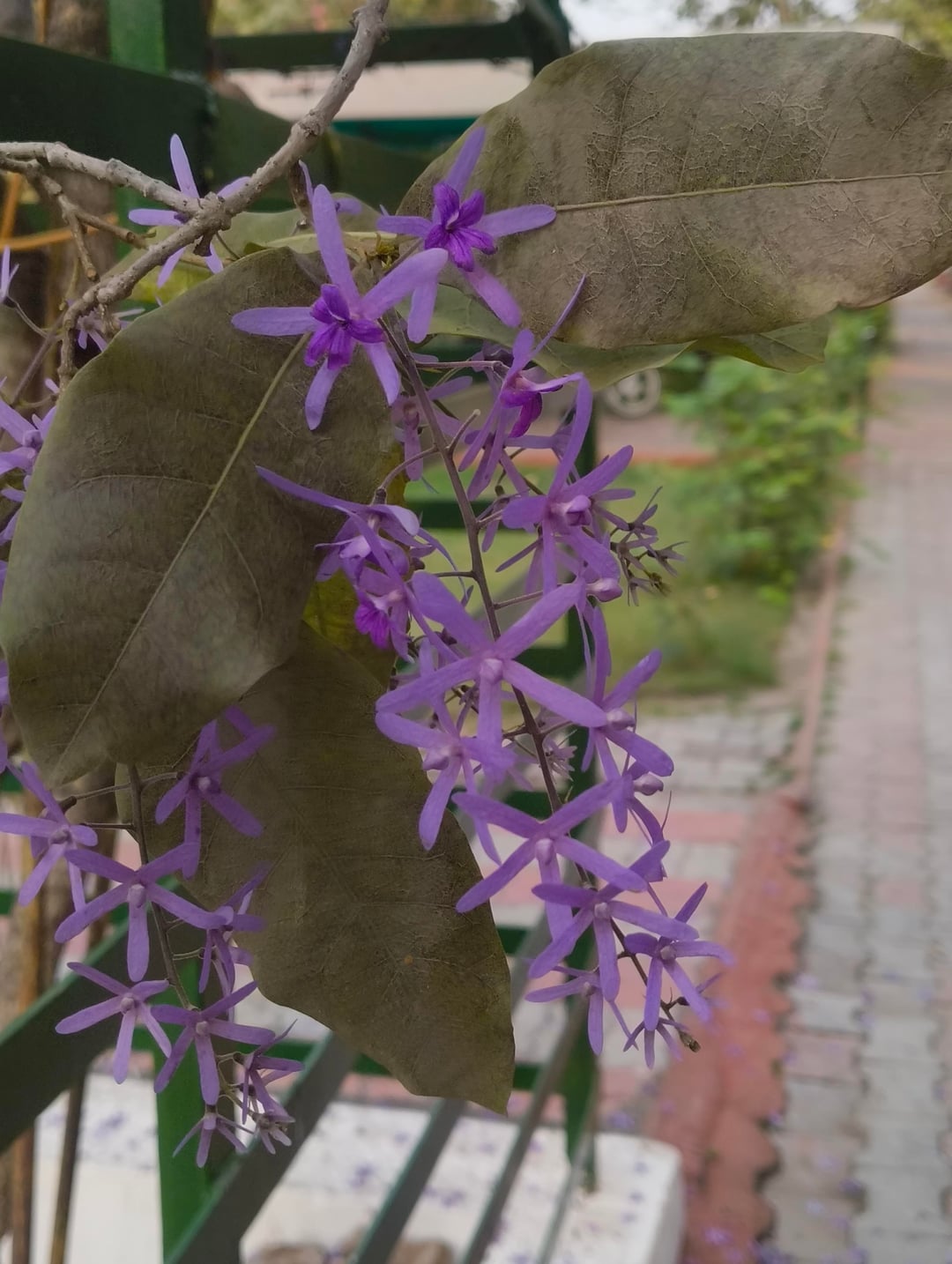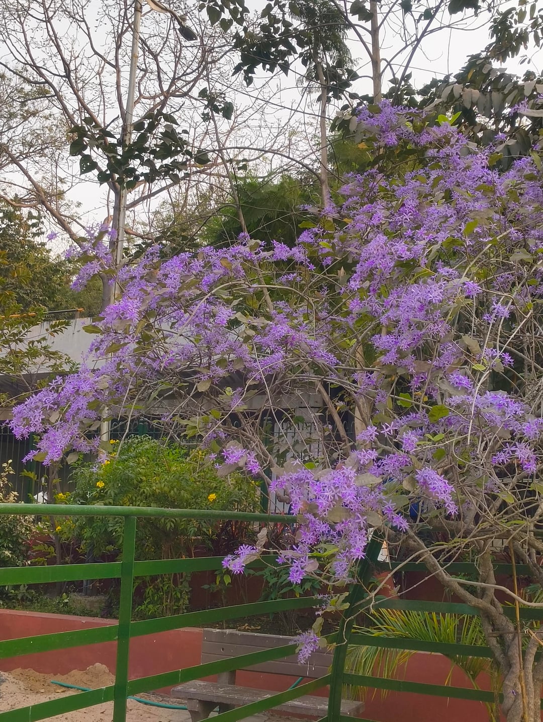 別名パープルリースとも呼ばれ、春が近づくとたわわに咲きます。近くの庭で美しい植物を発見