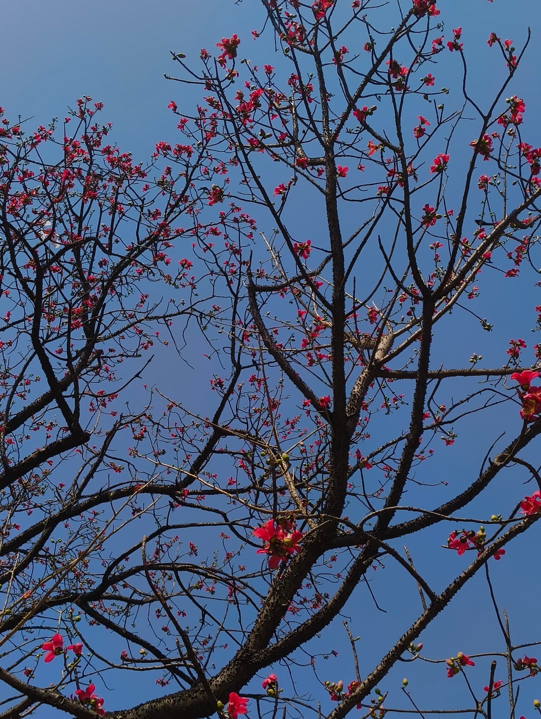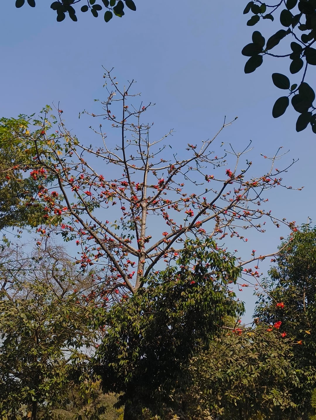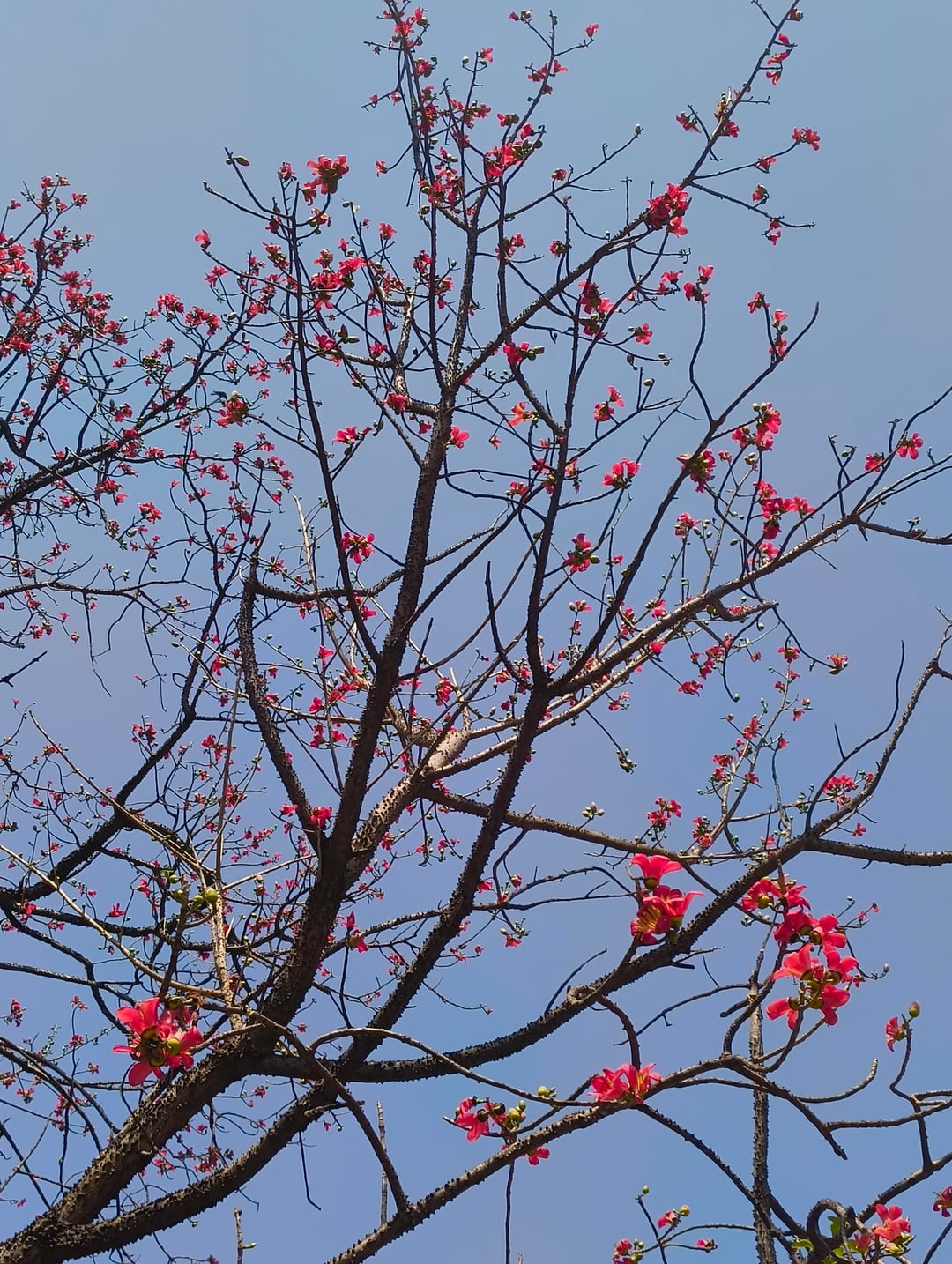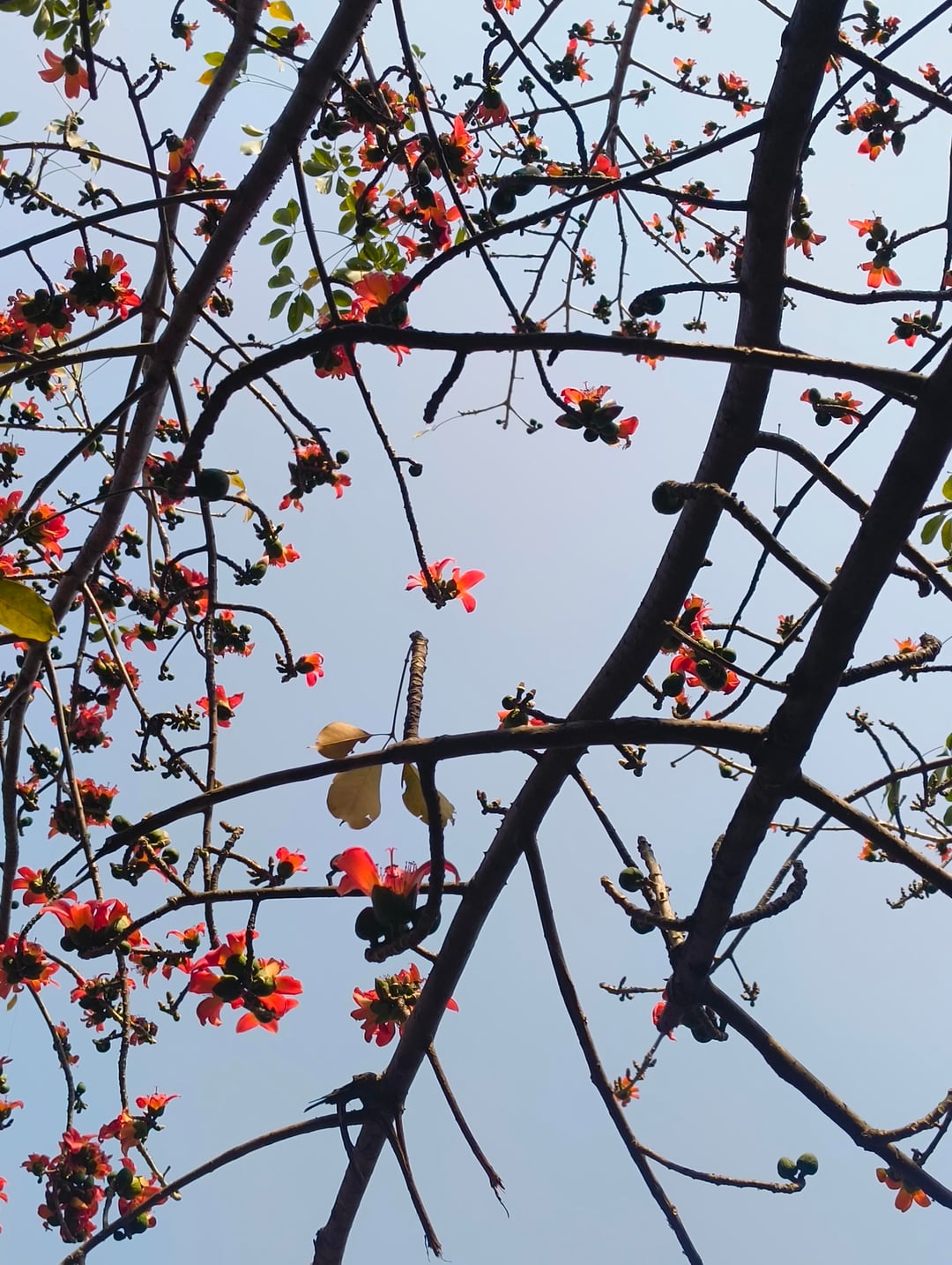 地元ではセマル、シマル、シムル、シャルマリ(南アジア)として知られるこの木は、冬の到来とともに裸になります。春の到来とともに大きく目立つつぼみが現れ、一斉に咲き誇り、春の到来を告げます。花が減り始めると、再び青々とした葉が茂り、それとともに大きなさやの形をした果実(果実の中に種子を散布するための非常に柔らかい白い繊維が入っているため、この名前が付けられています)が形成され、そのサイクルが続きます。