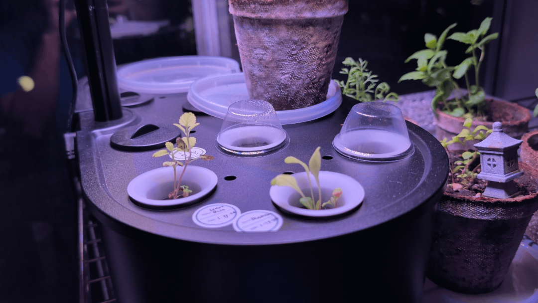 そこで私は、水タンク、給水ポンプ、植物ライトを備えたハーブガーデンの植物スタンドの1つに植えています。しかし、私のレモンバームは突然葉に黒い斑点ができ、下の葉の一部が枯れてしまいました。何が問題なのか誰か教えてもらえますか?それとも心配すべきでしょうか?他の植物にはそれがありません。左がレモンバーム。右がタンポポ