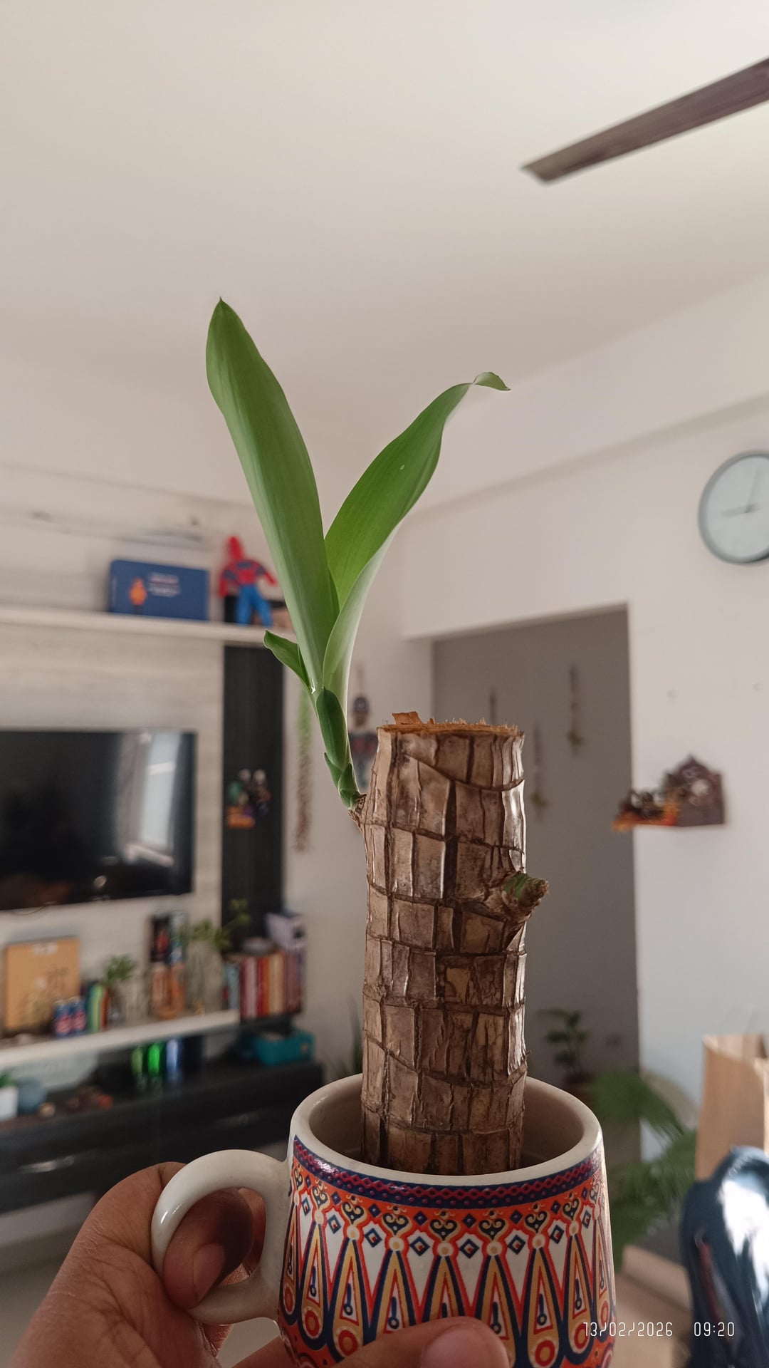 3~4ヶ月水に浸してから、ようやくこの小さな幹に葉が生えてきます。