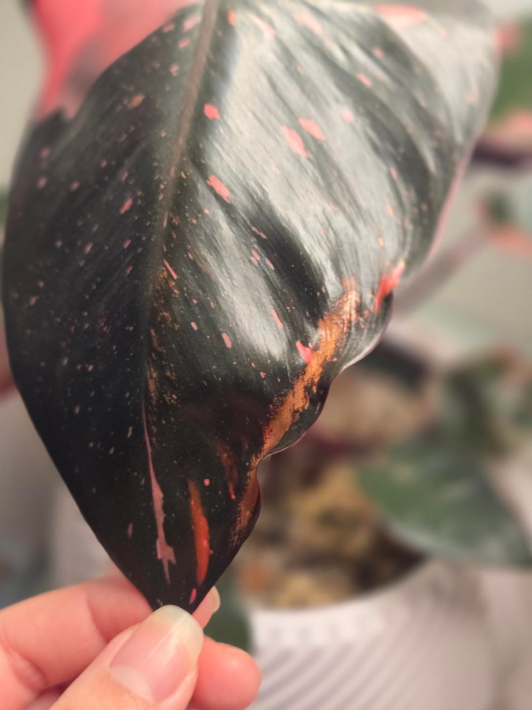 私のピンクのプリンセスの最後の2枚の葉が現れたとき、数日後にこれらの茶色がかった縞が現れました。何らかの欠乏症、低湿度によるあざ、または ゴクゴク アザミウマ。