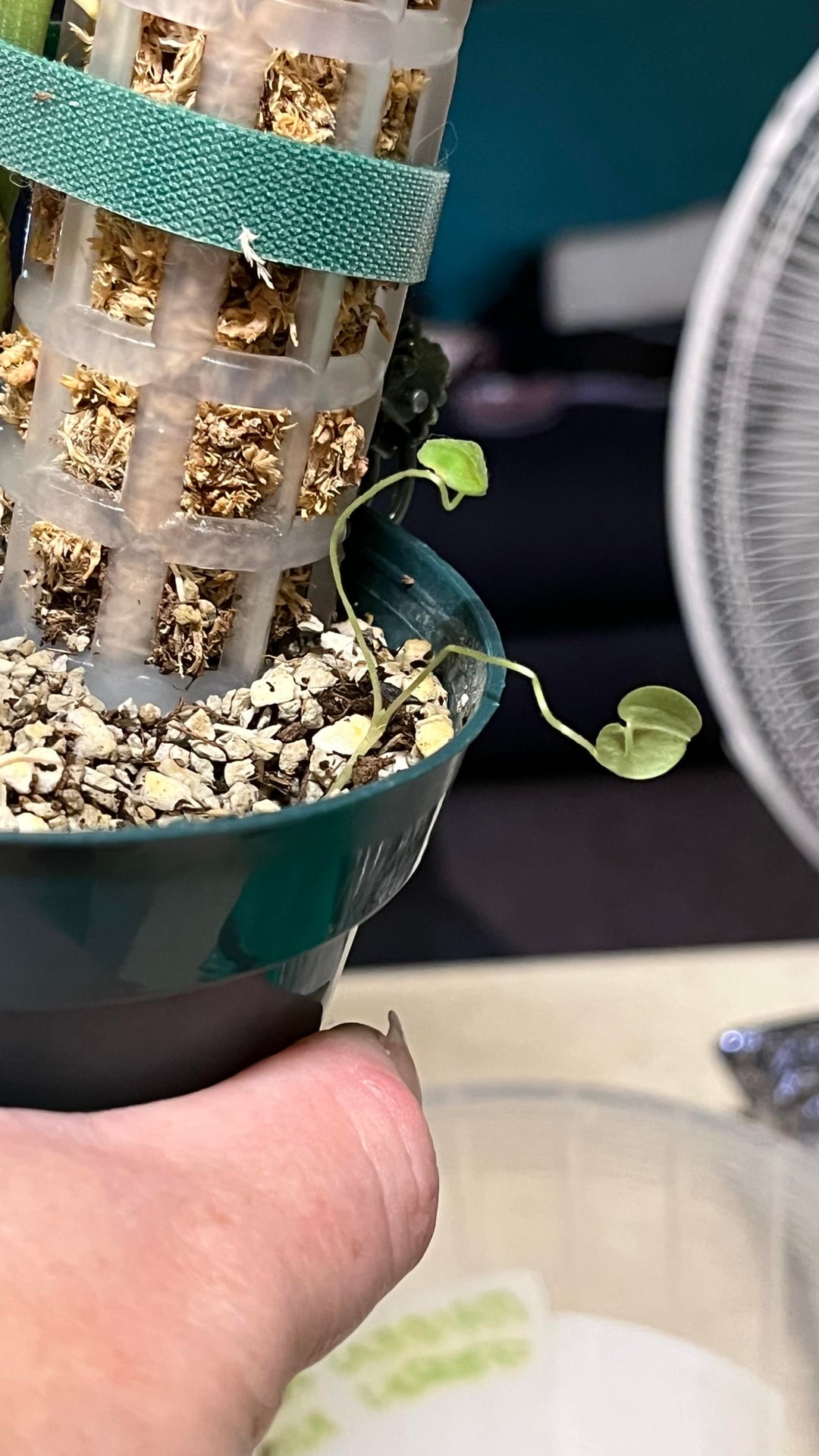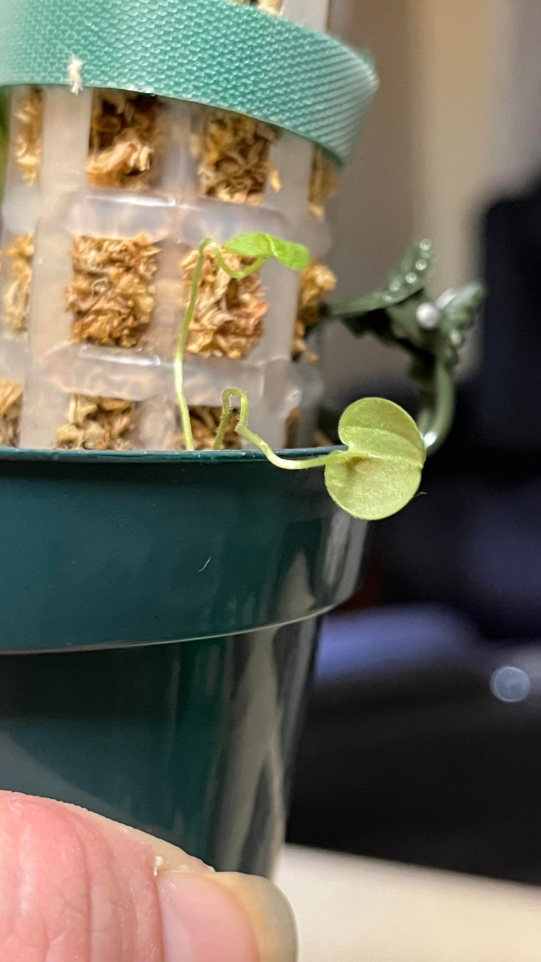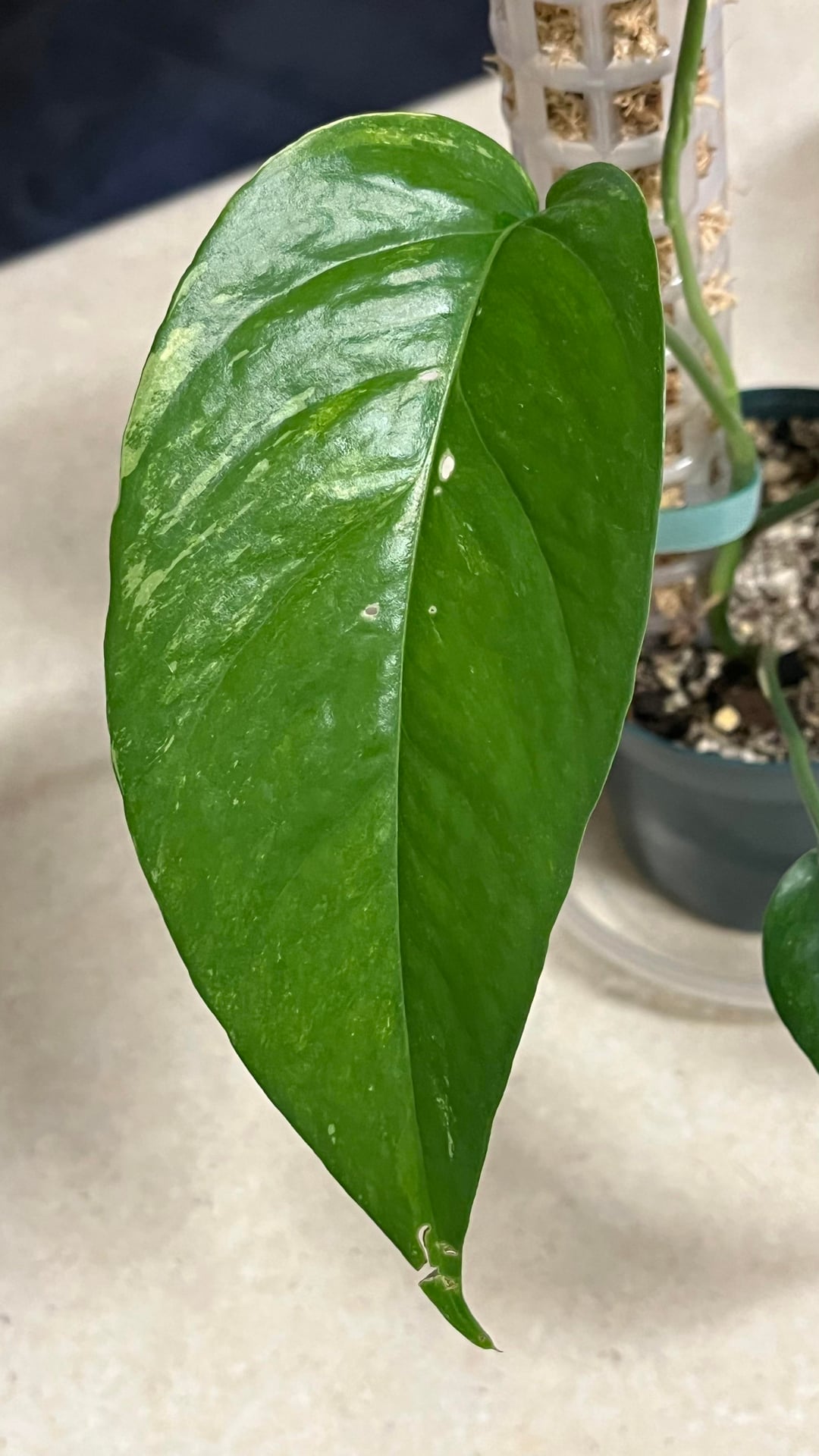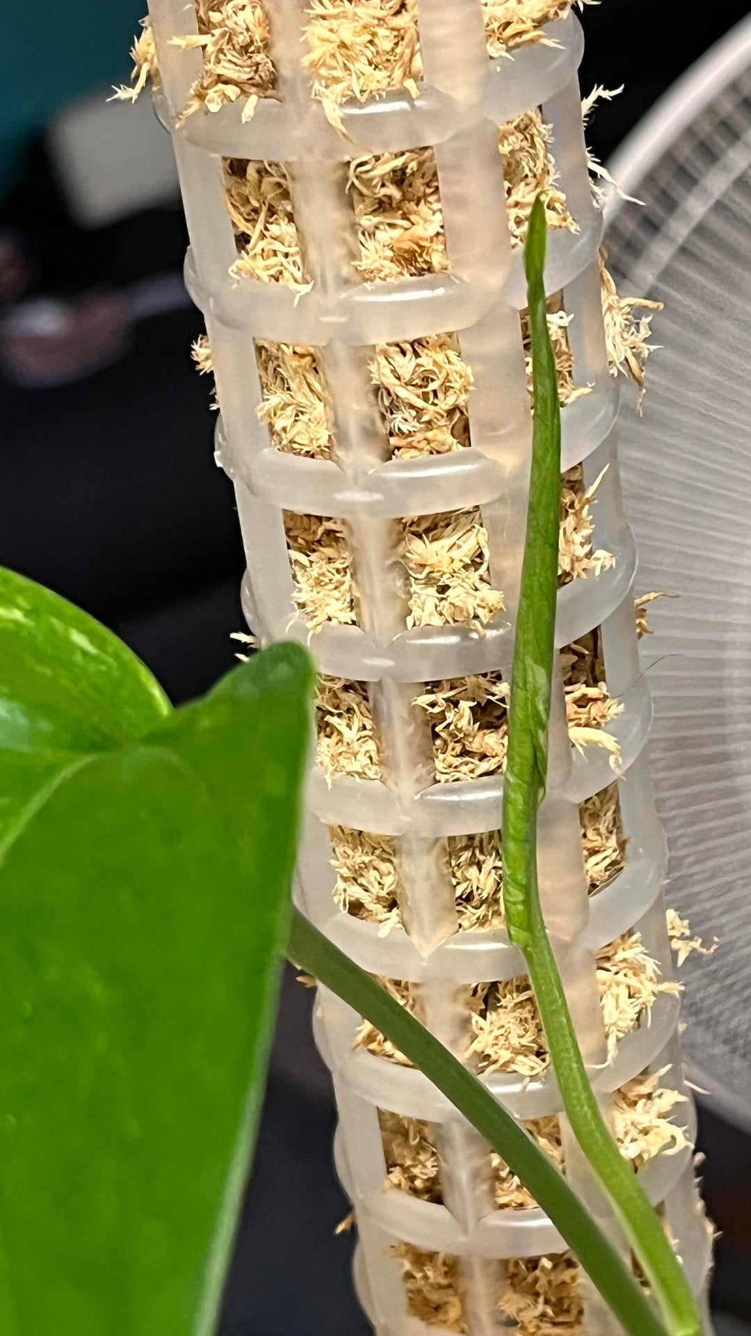 数週間前にこの植物を手に入れ、彼女は順調に成長し、新しい葉を2枚(完全に広げた)出し、さらに広げた葉も手に入れました…私は彼女に苗床のサイズから支柱を上げてほしかった(はい、苔が湿っていなければならないことは知っています)まだ水に濡らし始めていませんが、適切に登らせる前に次の植え替えを待っていました)私の質問は、彼女が今いる鉢のサイズに対してかなり小さいということです!苗床ポットからこのサイズになり、また部屋から出てきました。明らかに、彼女の根鉢が小さい場合は、まだ鉢を変えるつもりはありません…