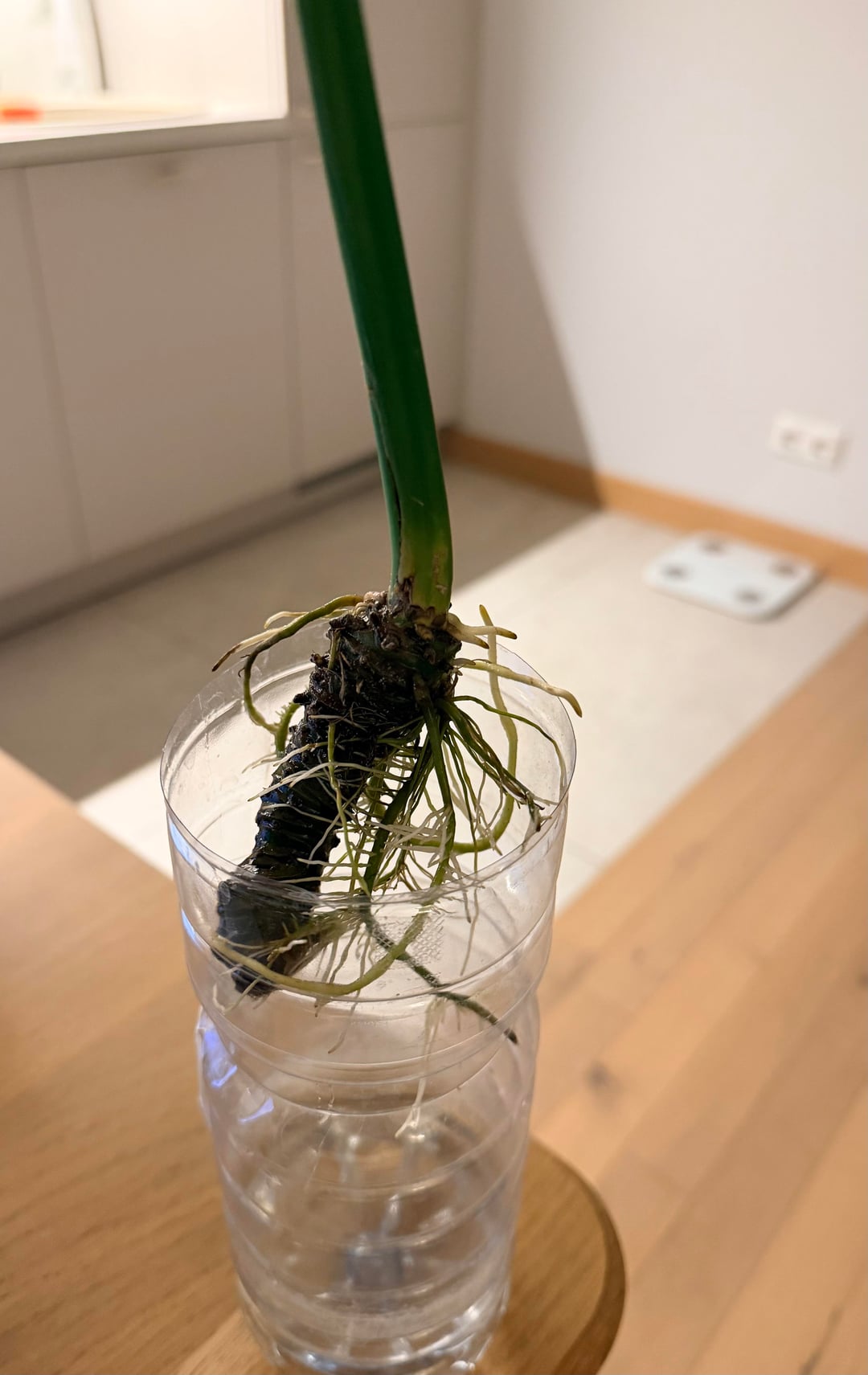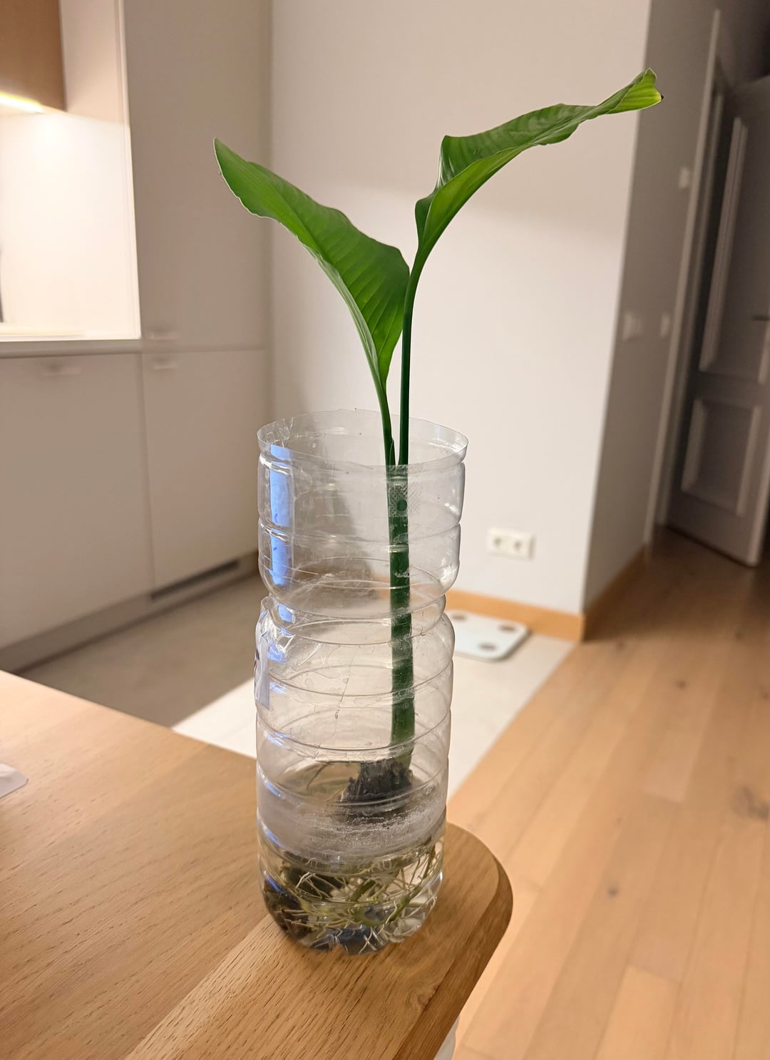 スパティフィルムの小さな芽にはほとんど根がありませんでした。すでに 3 か月間水中に放置されていますが、その結果がこれです。