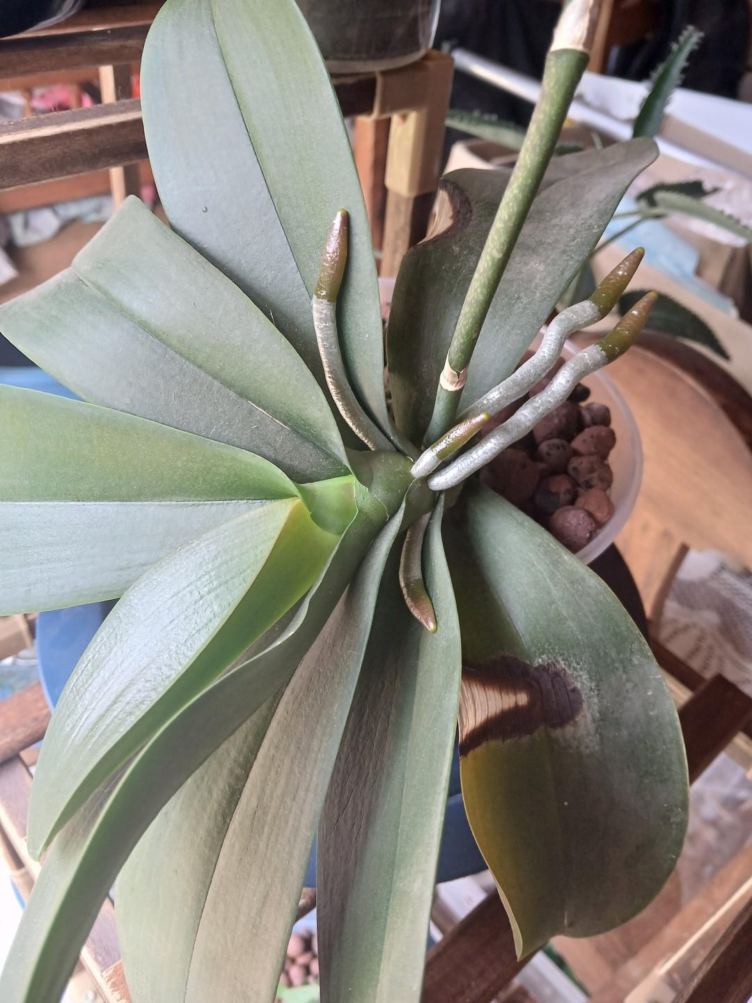 この蘭をしばらく(おそらく2年ほど)飼っていましたが、なぜ最近になって気根が生え始めたのか不思議に思っていました。