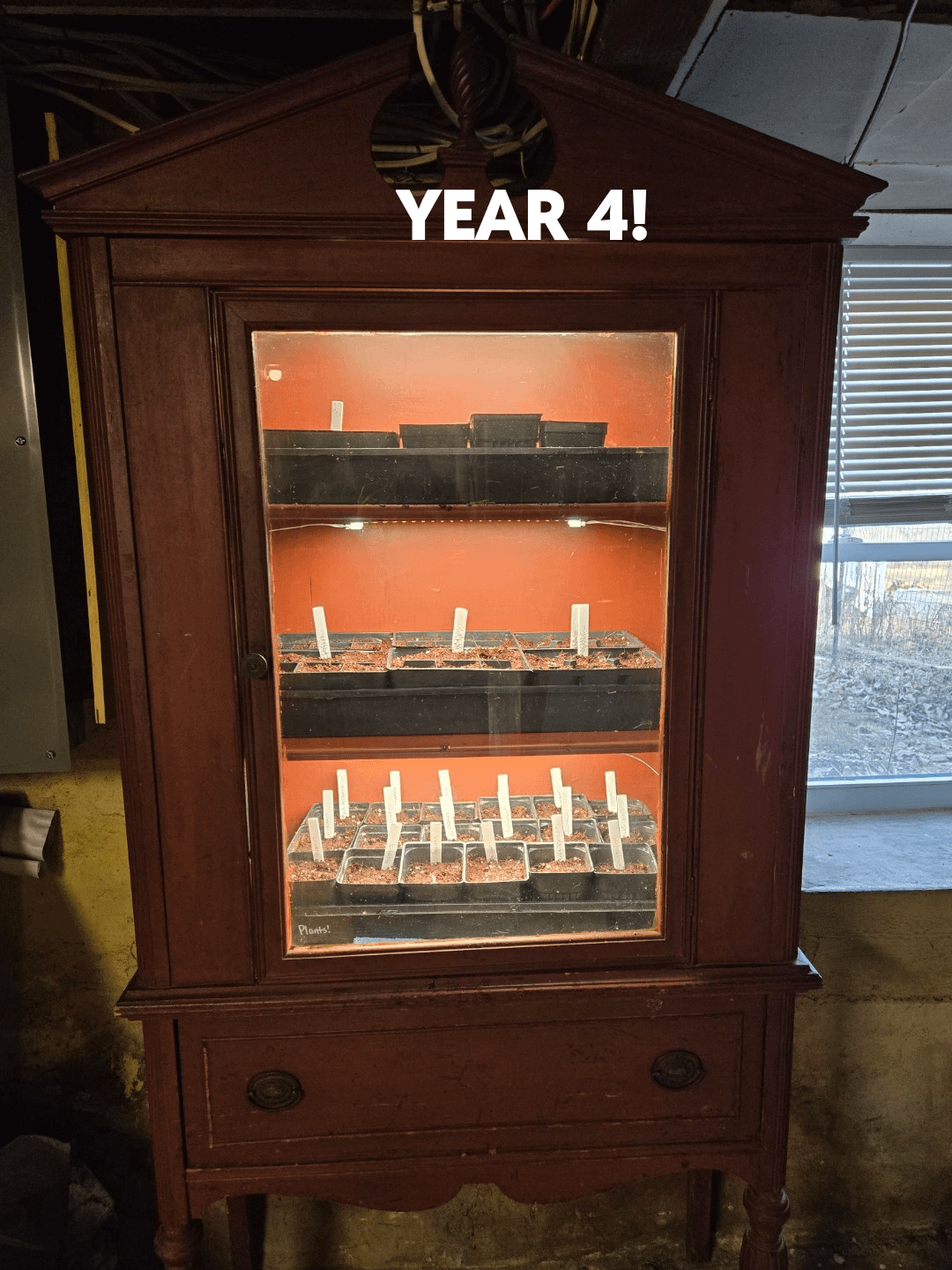 4年目:これが皆さん! FBマーケットプレイスで安く手に入れた古いキャビネットのおかげで、シードを開始するのに最適なセットアップになると期待しています。そこには栽培用ライトがいくつかありますが、まだ設置されていません(夫の助けが必要です)自動点滴灌漑システムを設置する予定です。私は 2024 年から鶏を飼っていますが、二人ともフルタイムで働いていることを考えると、自動化と利便性がこれらすべてをうまくやり遂げる方法であることを学びました。今年は新しいガーデンベッドはありませんが、来年のシーズンの終わりに新しいベッドを導入することを検討します