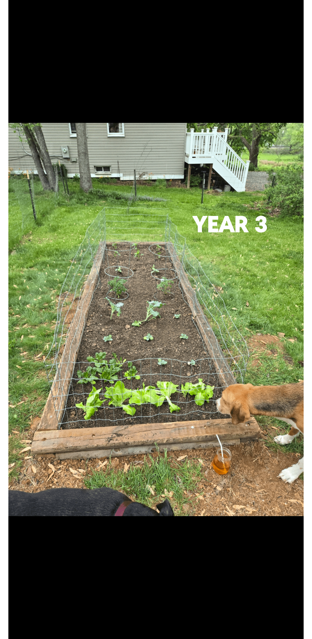 3年目:元に戻ります。 FBマーケットプレイスから安い木材を入手して、家にあるホースと古いハンドポンプの井戸のすぐ隣に、ちょっと盛り上がった16×4の庭のベッドを作りました。ハンドポンプはまだ動くので水を使いました!ある意味成功したシーズン。植えすぎて、いくつかの植物が他の植物を追い越してしまいました。キュウリの主茎を誤って折ってしまい、枯れてしまいました。シーズンの初めに屋内で種を蒔こうとしたのですが、猫が種に近づいてしまい、全部台無しにしてしまいました。結局園芸センターから植物を入手しました。