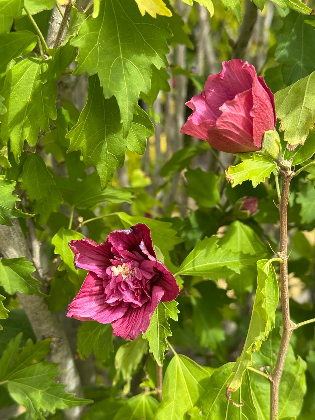 一般的にムクゲとして知られるハイビスカス シリアクス。一重咲きと八重咲き